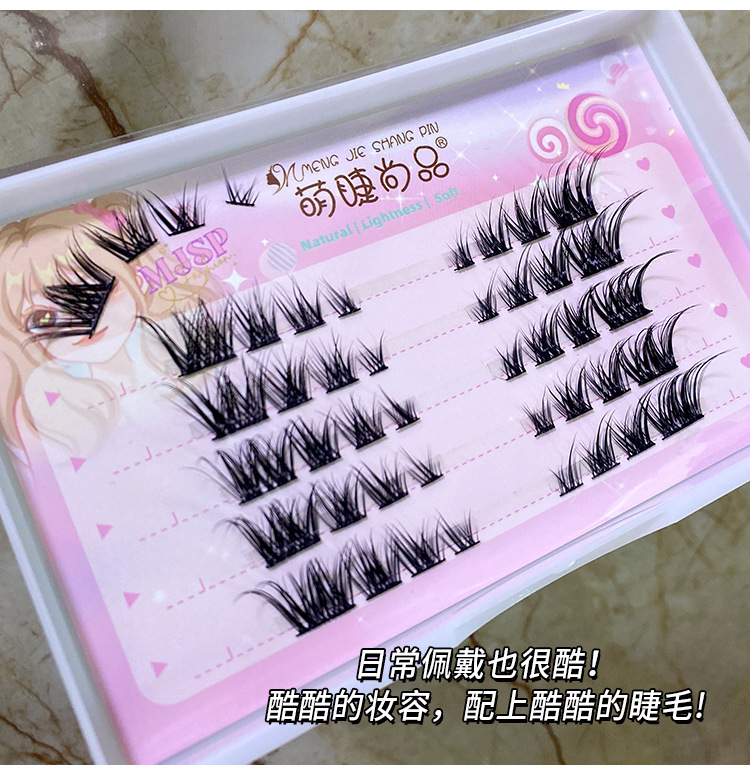 萌えまつげ尚品分段式斜め飛び狐目偽まつげ黒細い茎欧米自然散らかったモデル