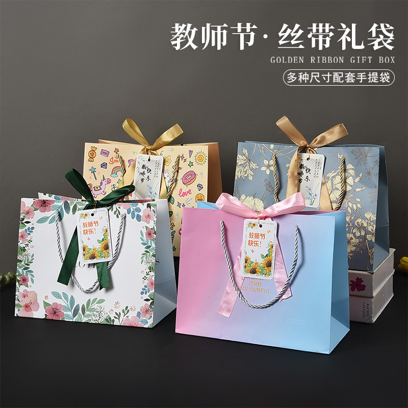 ins风教师节礼品袋 蝴蝶结手提袋感谢老师送礼包装袋礼物纸袋现货