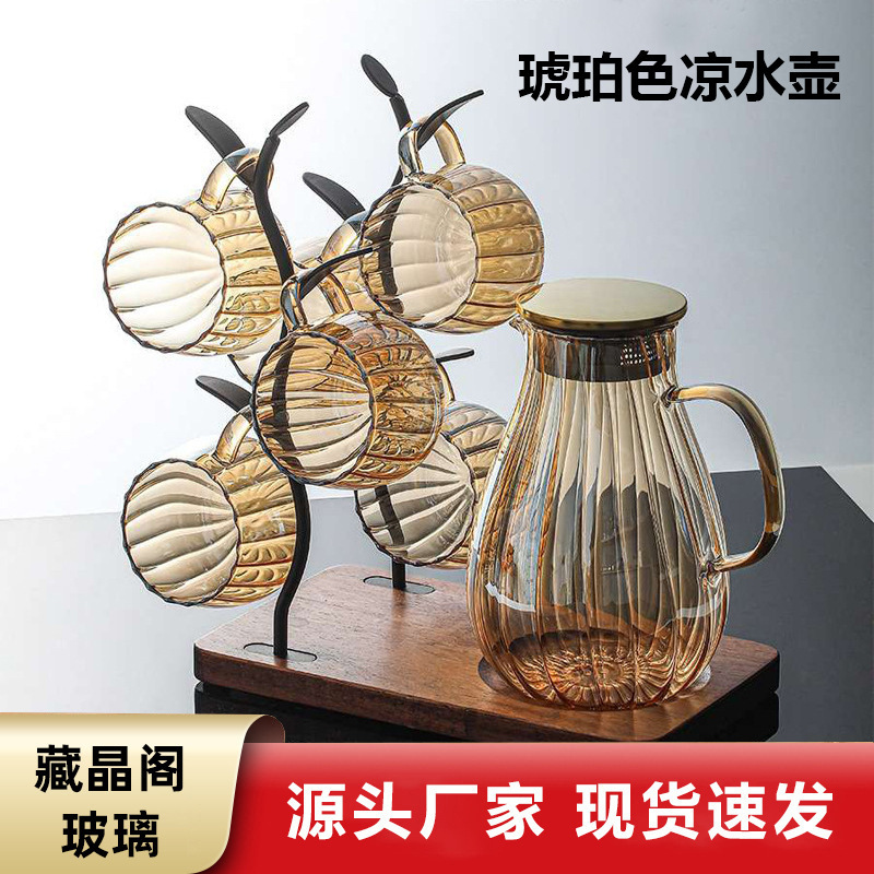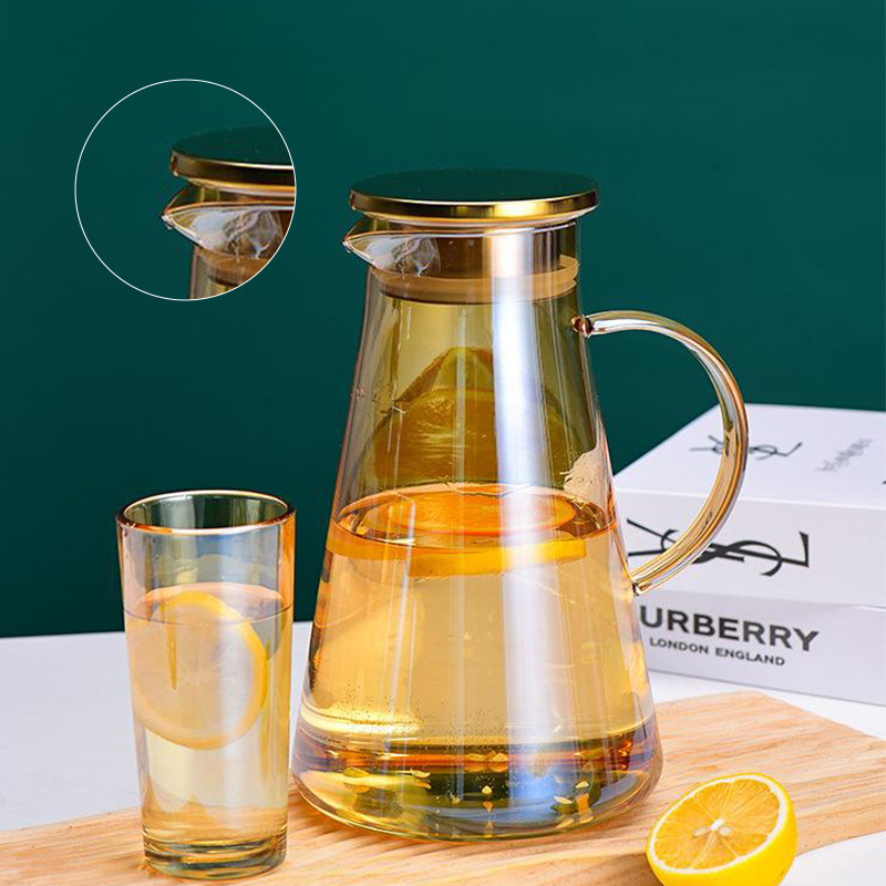 ガラス冷水ポットセット大容量高ホウ素シリコン琥珀色ガラスレモンポット飲料ジュースポット水筒コップ
