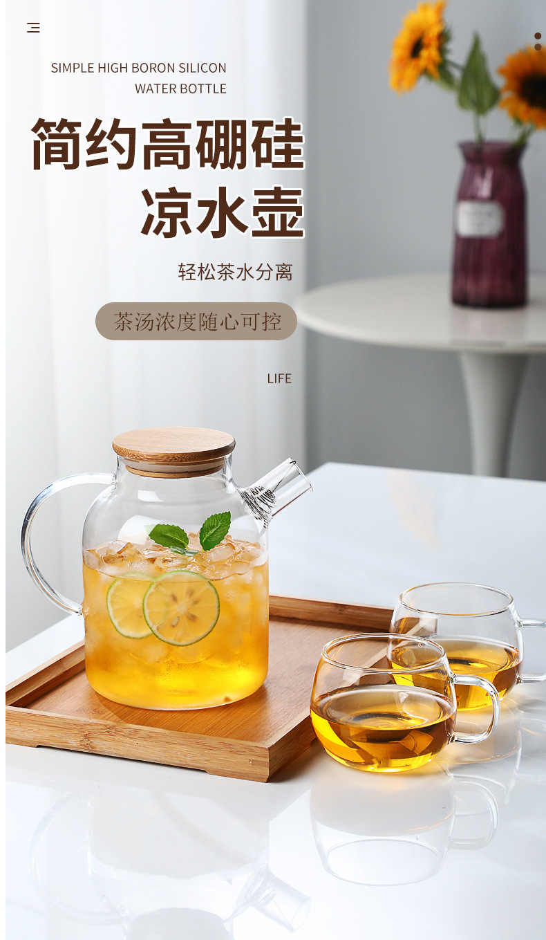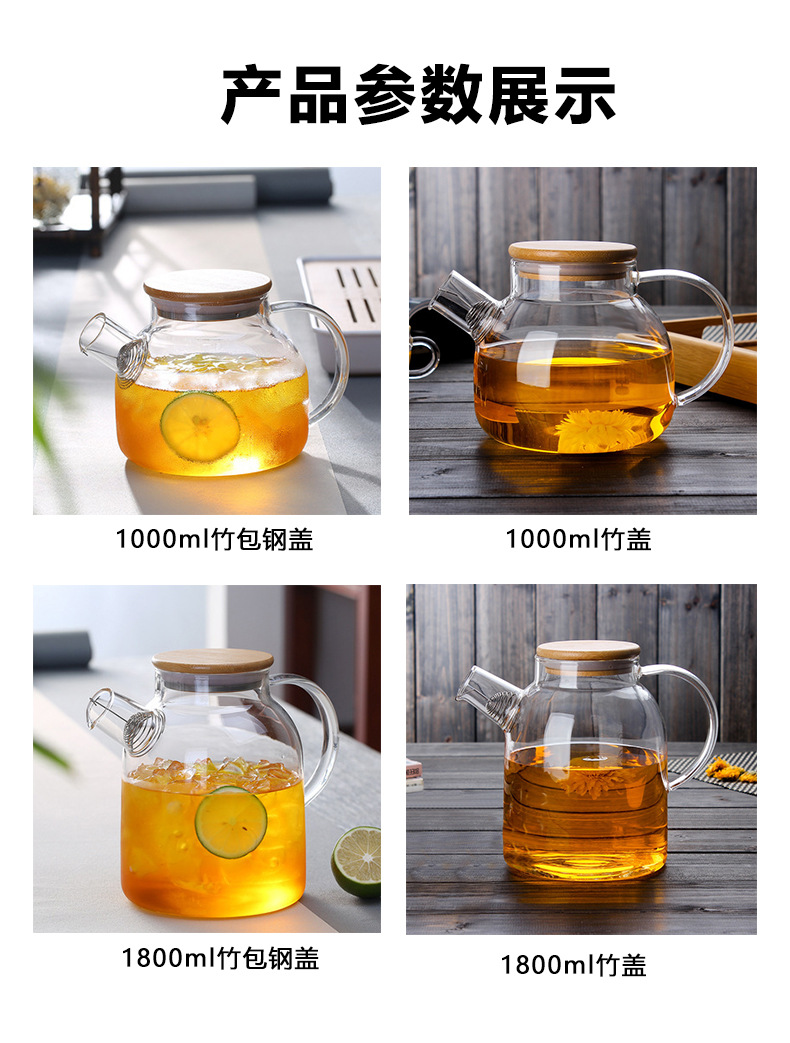 竹蓋壺ジュース壺家庭用高ホウ素シリコン冷水筒電気陶炉加熱花急須透明ガラス冷水筒