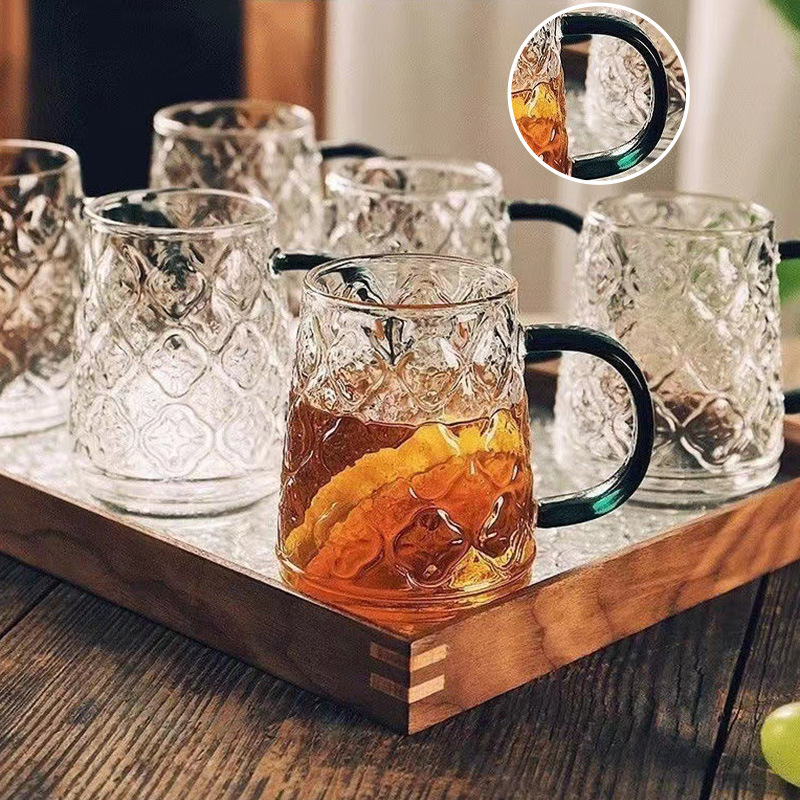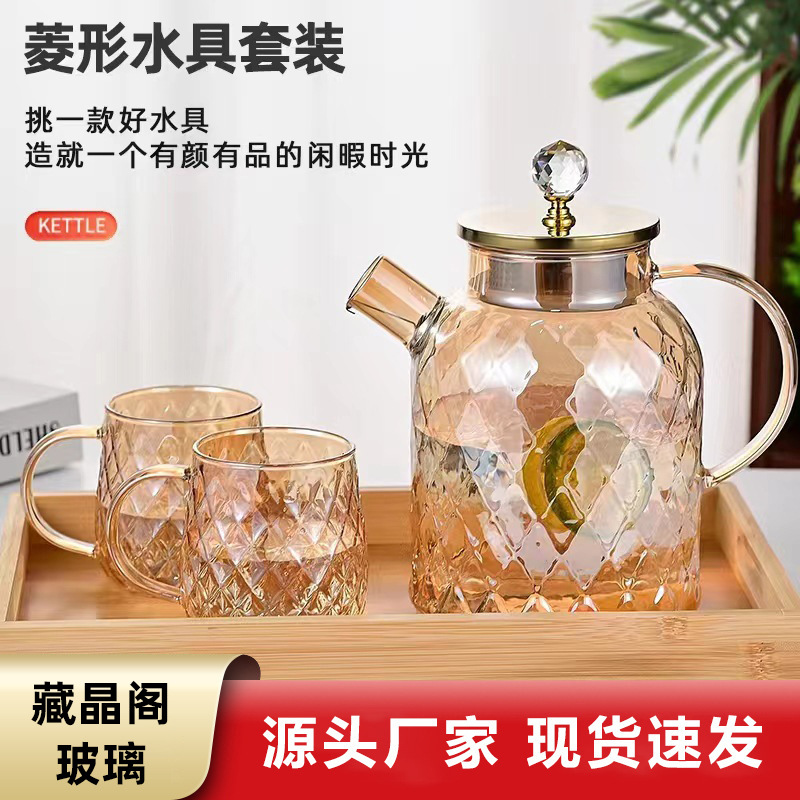 ガラス冷水筒金ドリル平蓋冷水筒高ホウ素シリコンヨーロッパ式花ティーポットカップセットジュースポット菱壺
