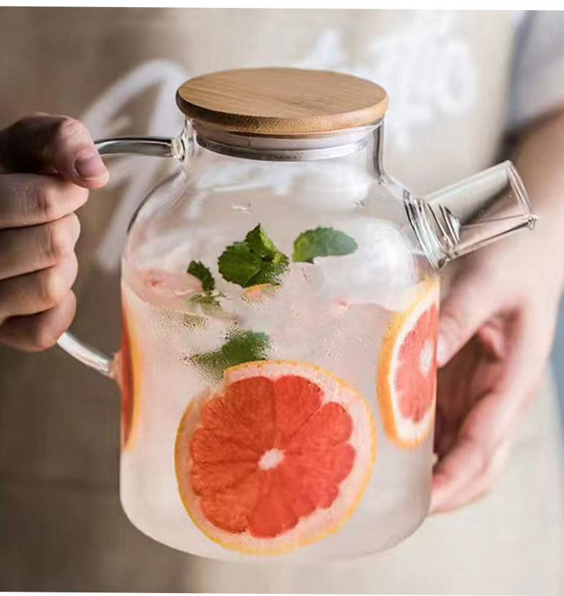 冷水ポット 竹蓋ポット ジュースポット 透明ガラス 家庭用 高ホウケイ酸ガラス冷水ポット 電気陶器コンロ加熱 花茶ポット