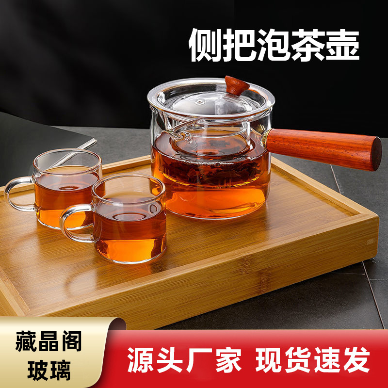ガラスティーポット家庭用蒸煮一体厚さ囲炉煮茶ティーポット高ホウ素シリコンガラス耐高温提梁ポット