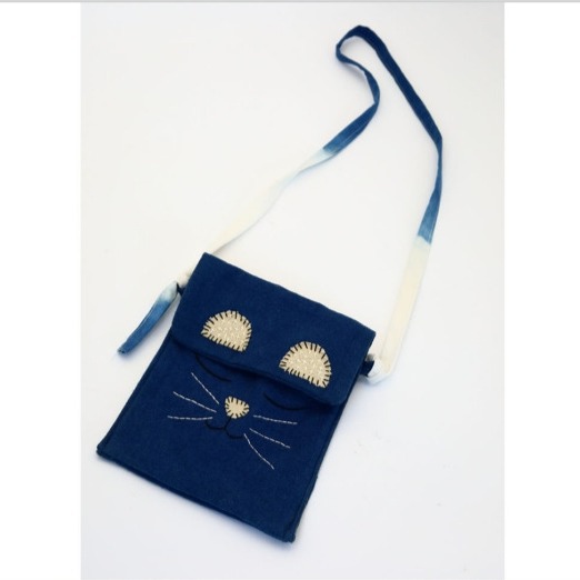 手刺繍猫携帯バッグ紺色かわいいバッグ小清新風非遺文創民族文化プレゼント