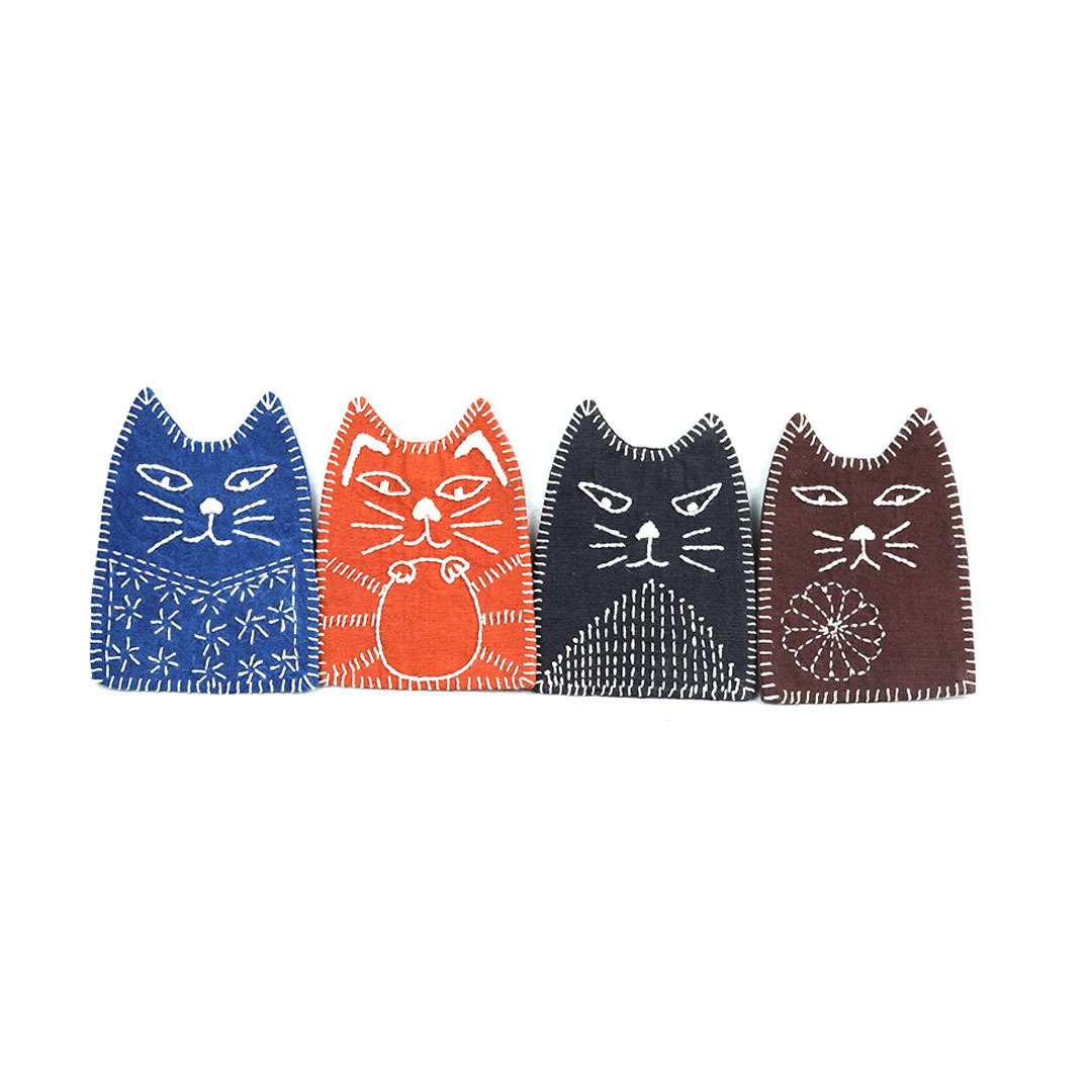 手作り藍インディゴ染め手刺繍動物猫コースター清新萌え文芸風非遺文創民族文化プレゼント