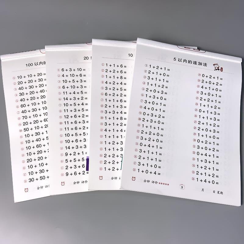 5/10/20/50/100以内全横式加減算口算問題カード数学練習帳幼稚園大クラス本