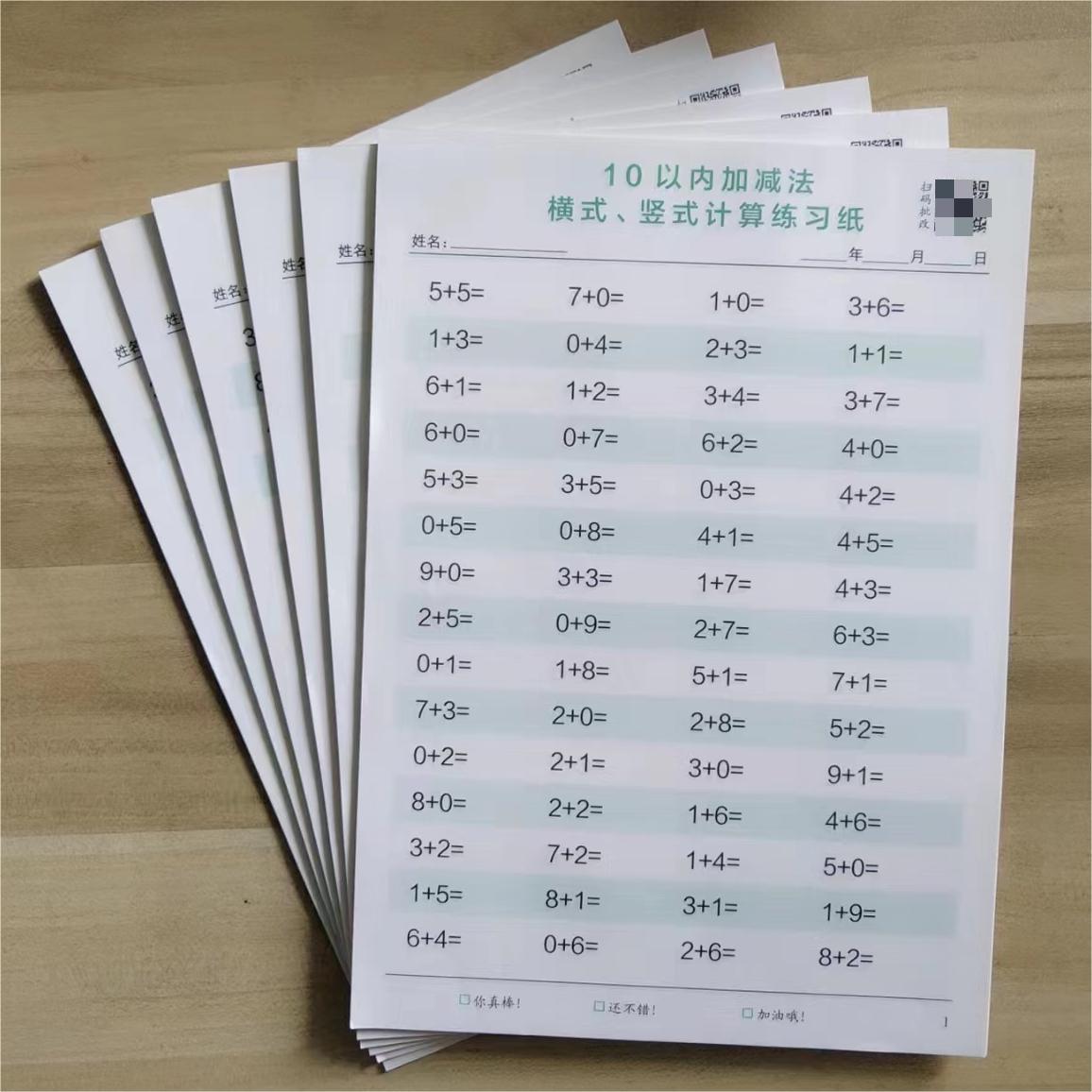 数学速算練習紙口算問題カード102050100以内加減算横式縦式練習紙一二