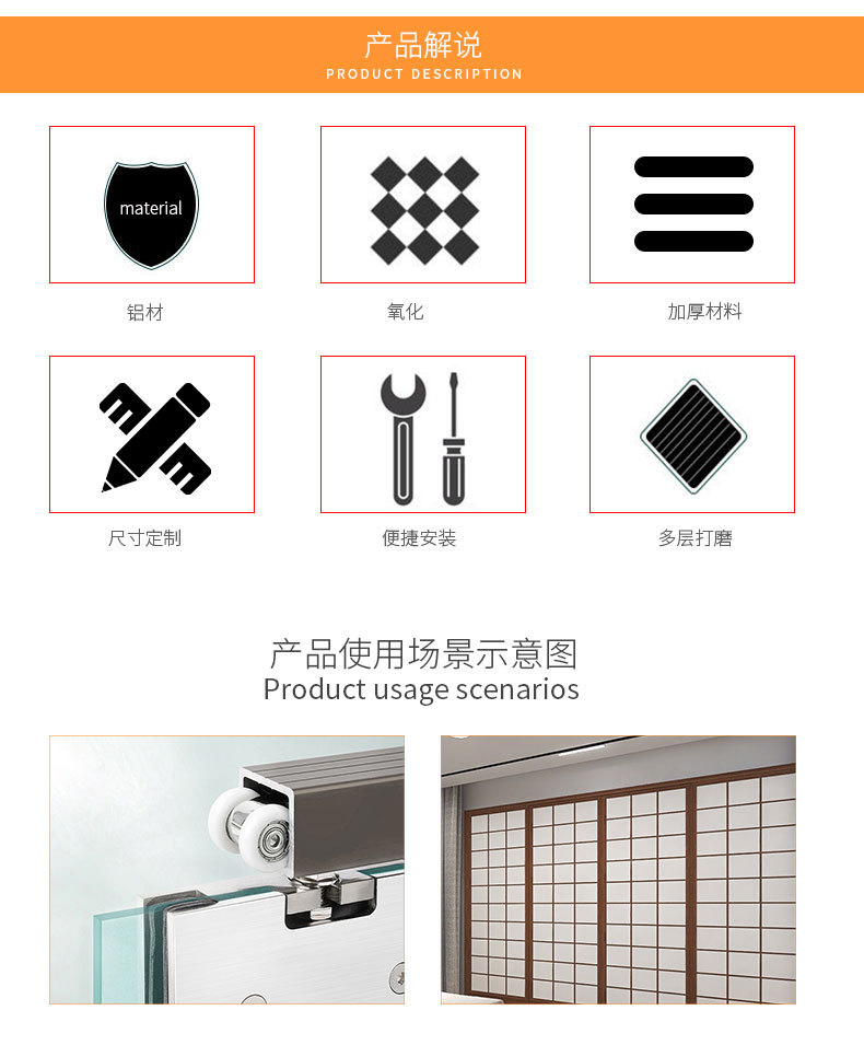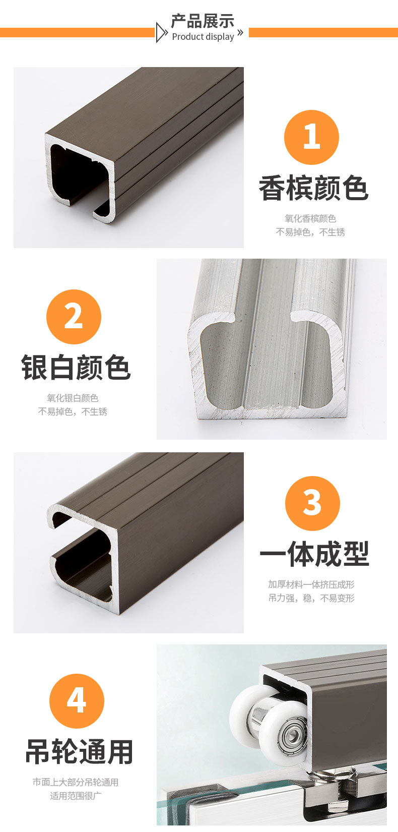 吊轨移门轨道加厚铝合金推拉门配套滑轨木折叠门橱房门滑轨轨道