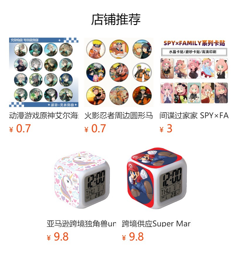 マリオ私の世界火影七色目覚まし時計変色照明アニメ漫画時計静音夜光灯時計