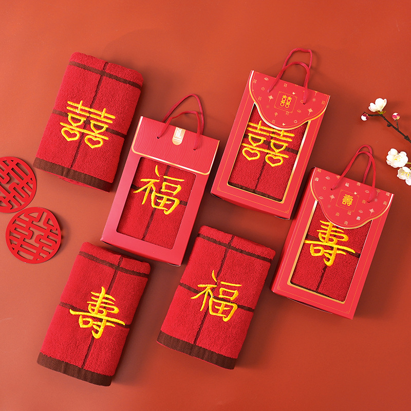 ヒ福寿タオルギフトボックス結婚赤いお祝いギフトボックス包装ボックス喜字手提げボックス現物タオル卸売り