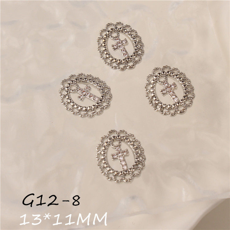 2025新款银色暗黑万圣节美甲钻锆石饰品十字架嗜血枪黑指甲钻吊坠