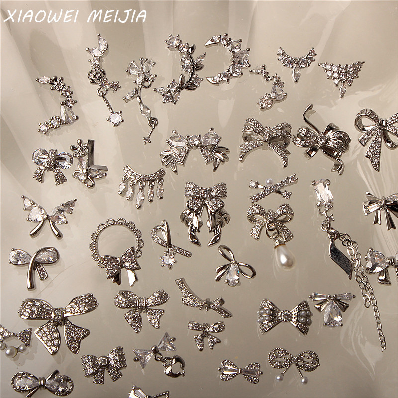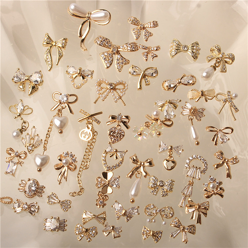 美甲钻饰品飘带蝴蝶结爱心珍珠锆石钻饰轻奢高级感指甲吊坠小蝴蝶