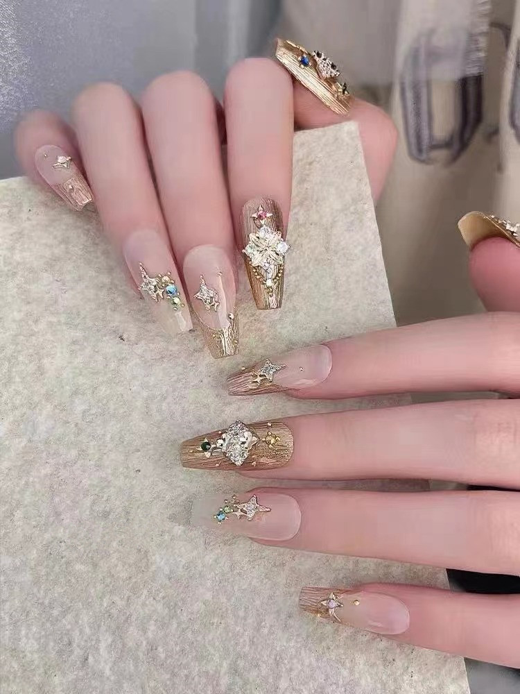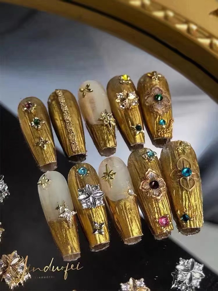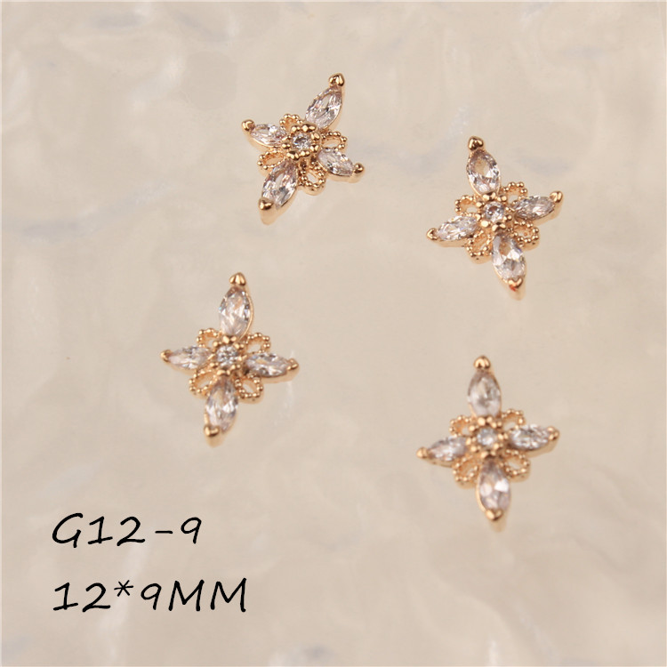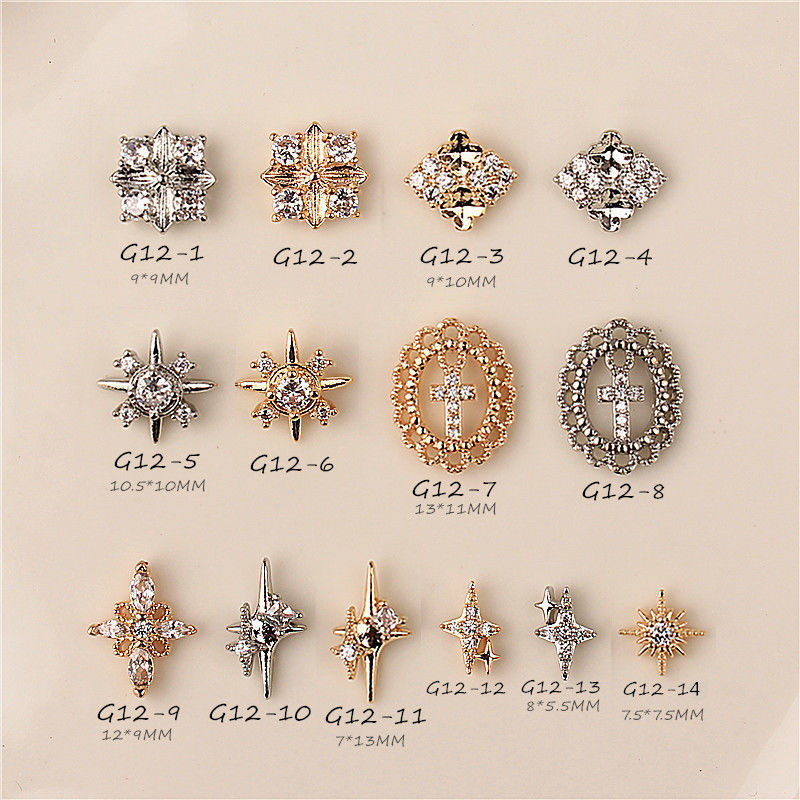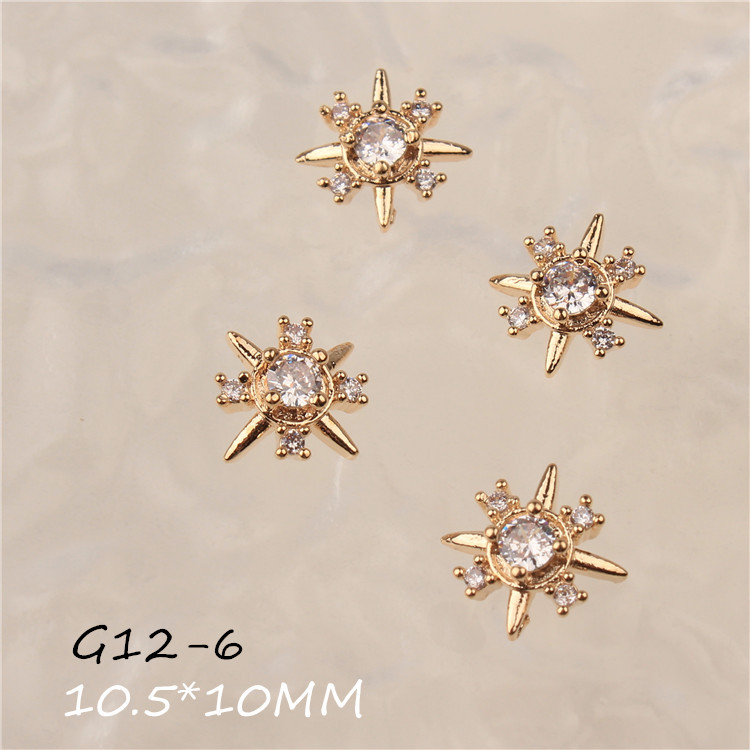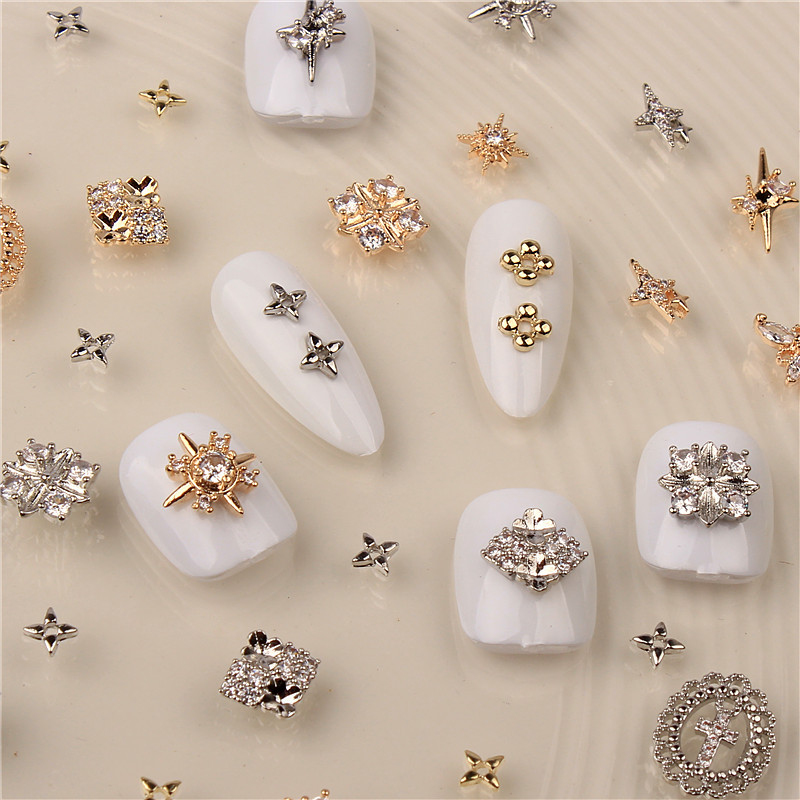 ブチラティネイルシール金色の透かし彫り爪装飾品レリーフ超フラッシュ金属ジルコン部品星芒