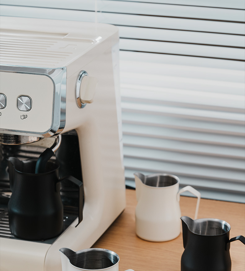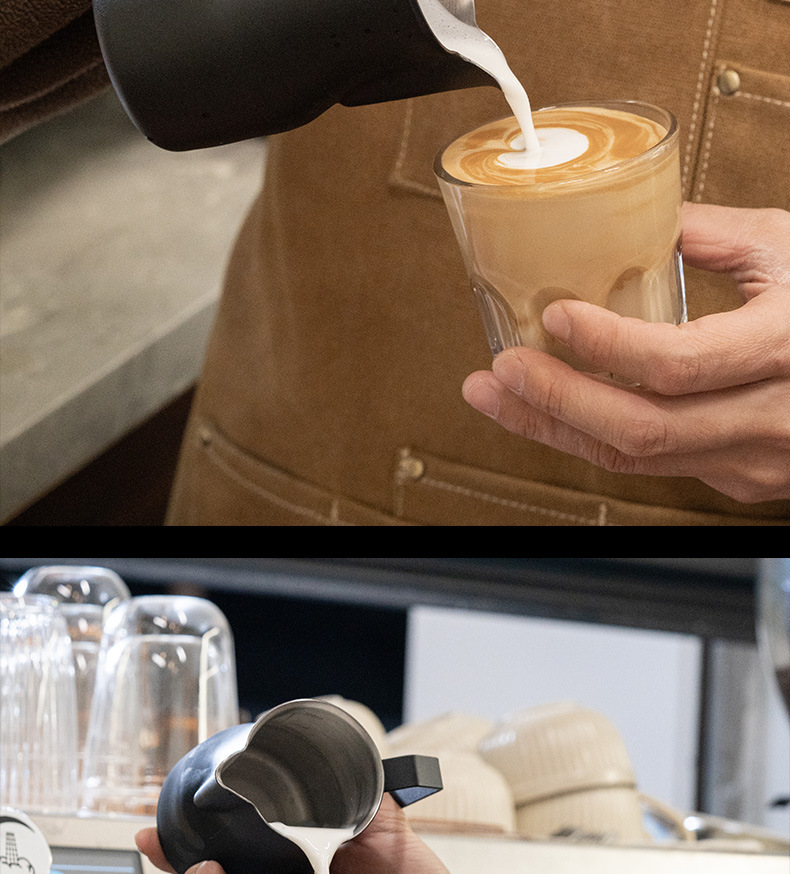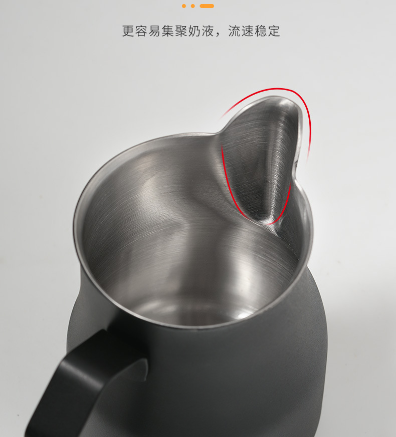 意式304ステンレスは目盛りのコップの先の口のミルクの泡の壺を持っています。