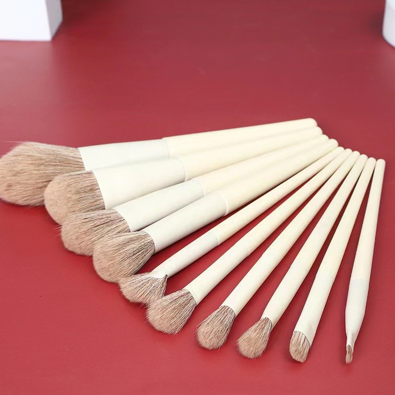 大版藍橋10本入りメイクブラシセット、ハイライト、ソフト毛、本物、コンシーラー、ロングハンドル、お手頃価格、美容ツール、メイク仕上げ