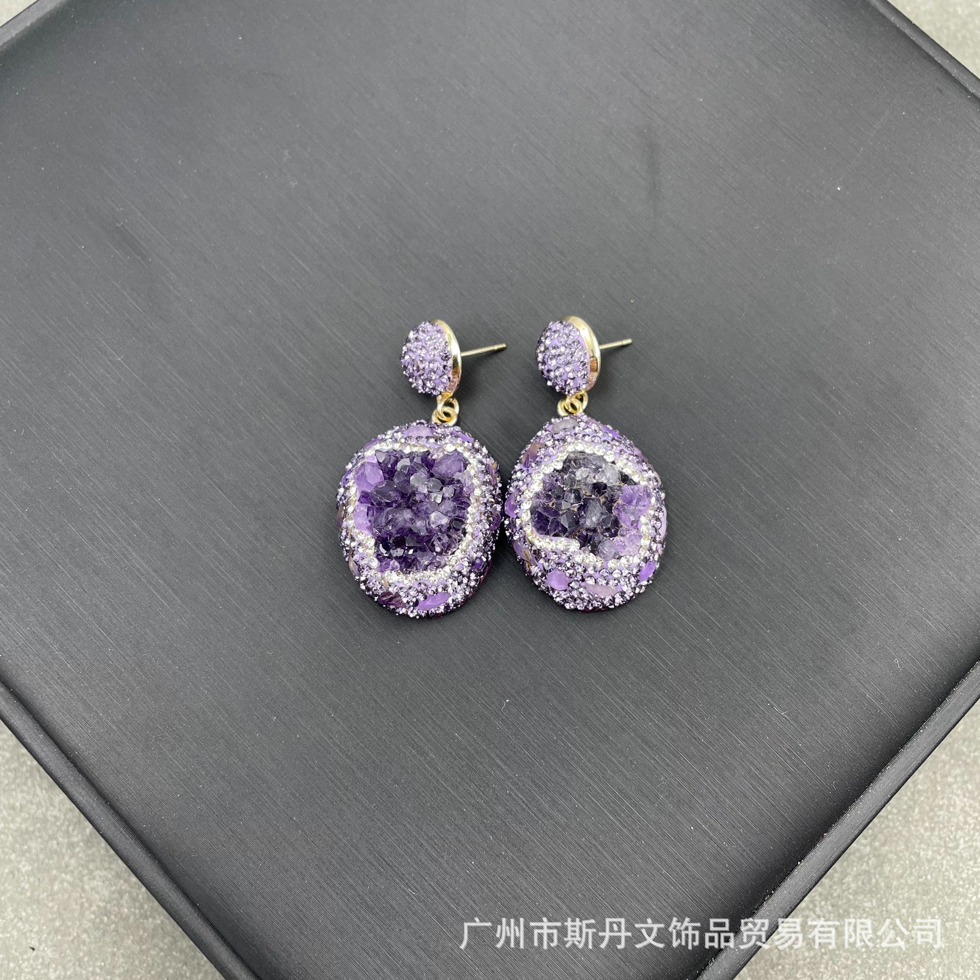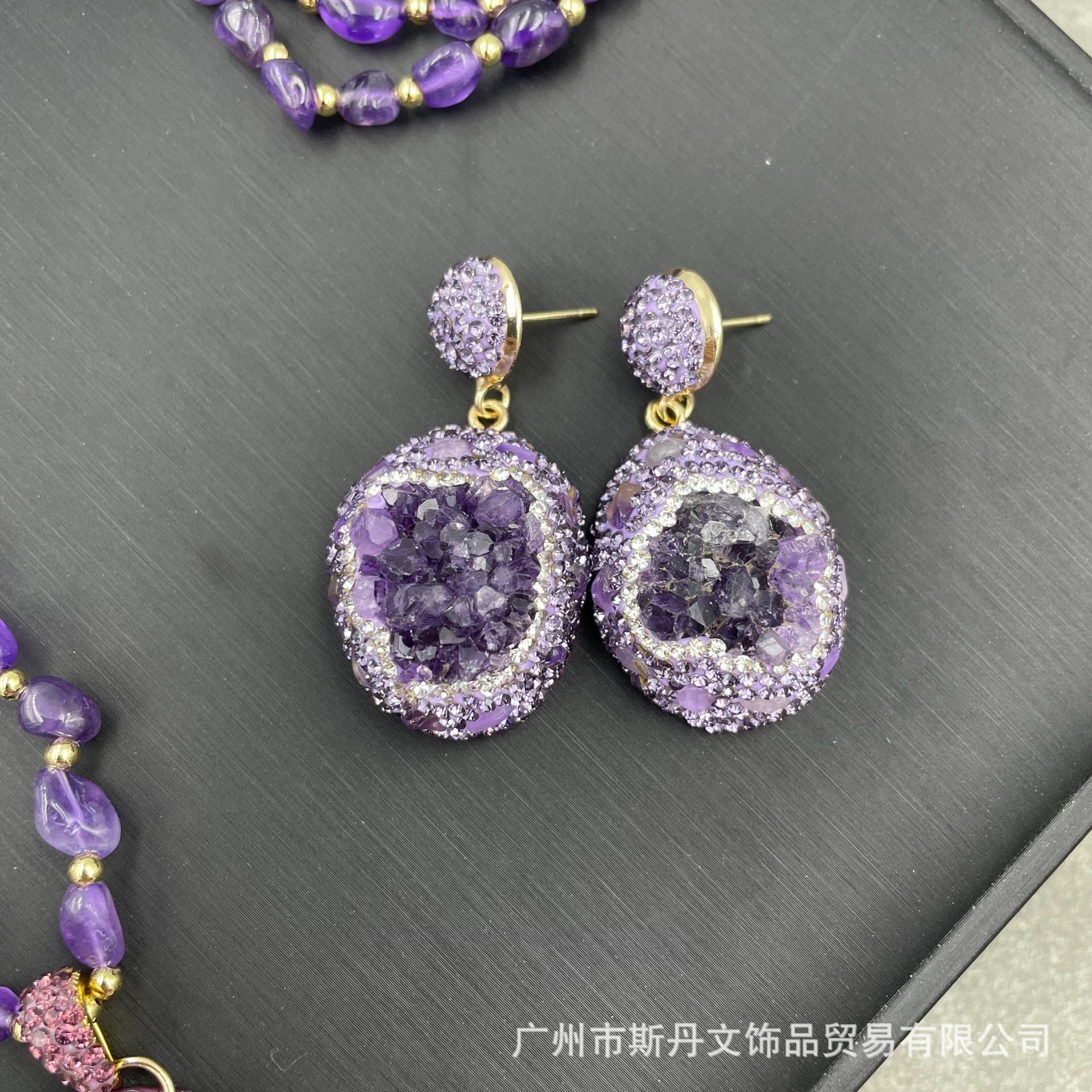 天然原石紫晶チェコドリル四点セット欧米フランスの個性原鉱アクセサリー高級手作りセット