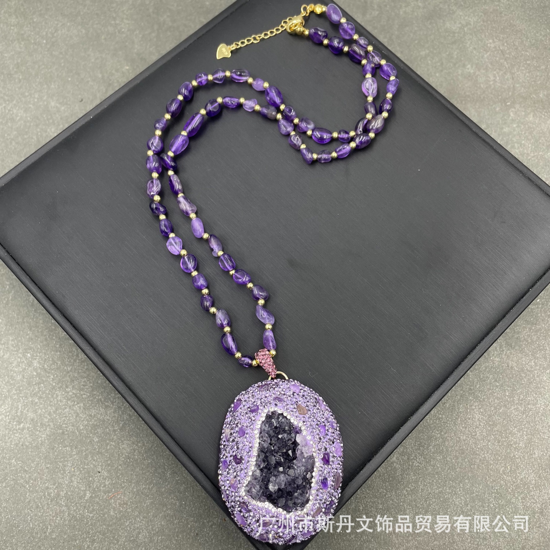 新商品のグアイグアイ原鉱紫晶原石ペンダントネックレスフランス式欧米個性セーターチェーンファッション保色アクセサリー