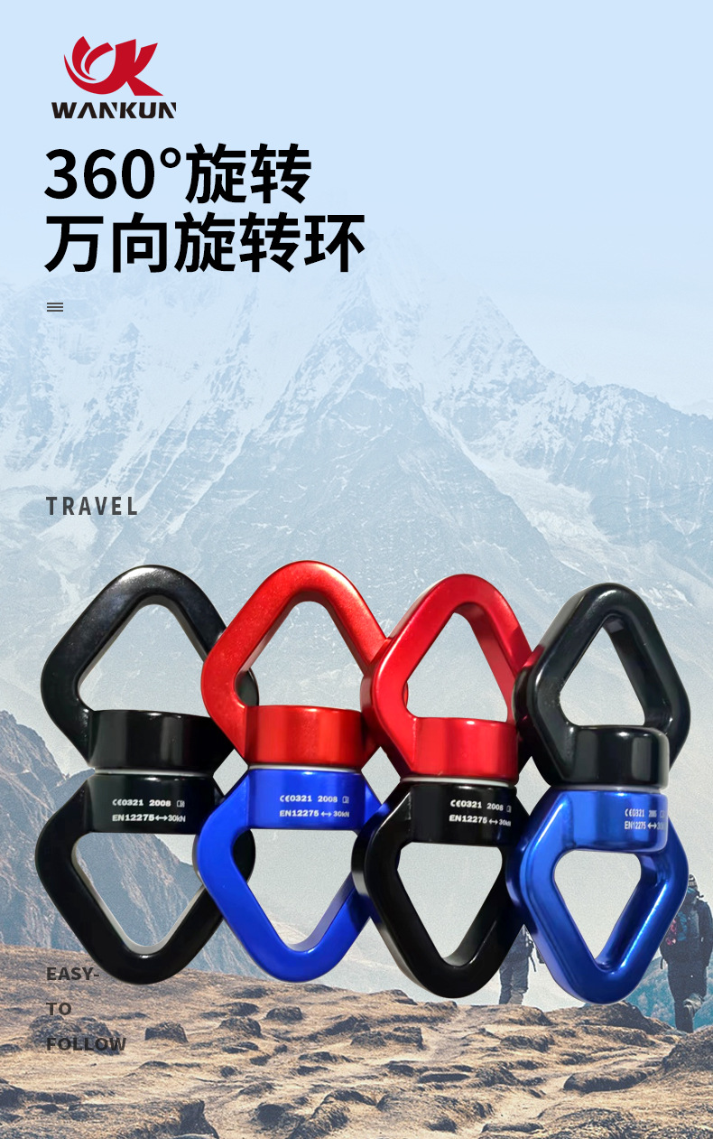 安坤屋外クライミング回転万方向輪登山吊威亜8字接続環空中ヨガ万方向環