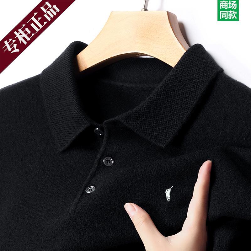 保罗100纯羊毛衫翻领毛衣男秋冬羊毛衫打底休闲中青年针织POLO衫