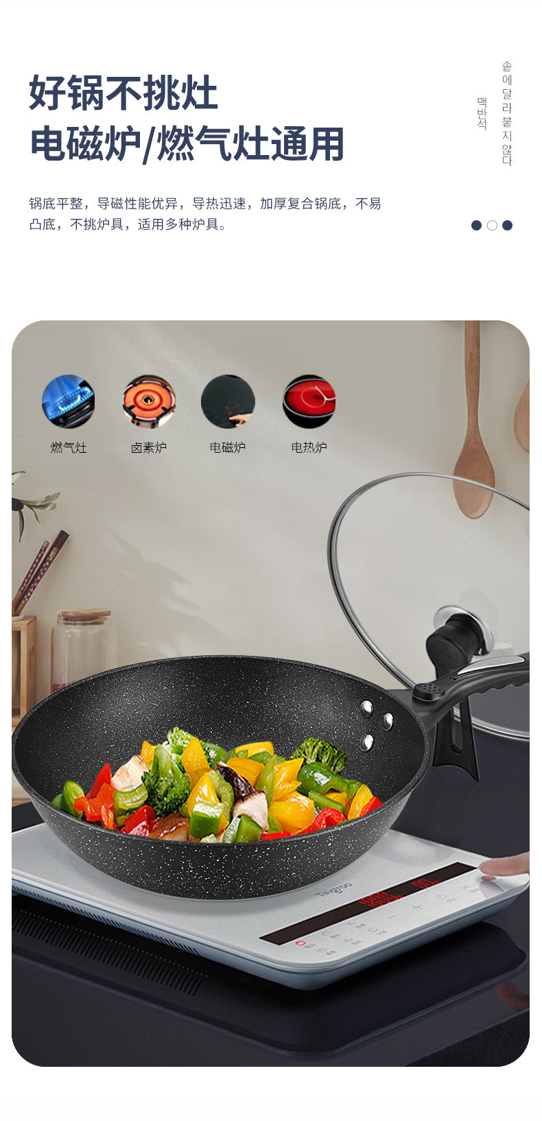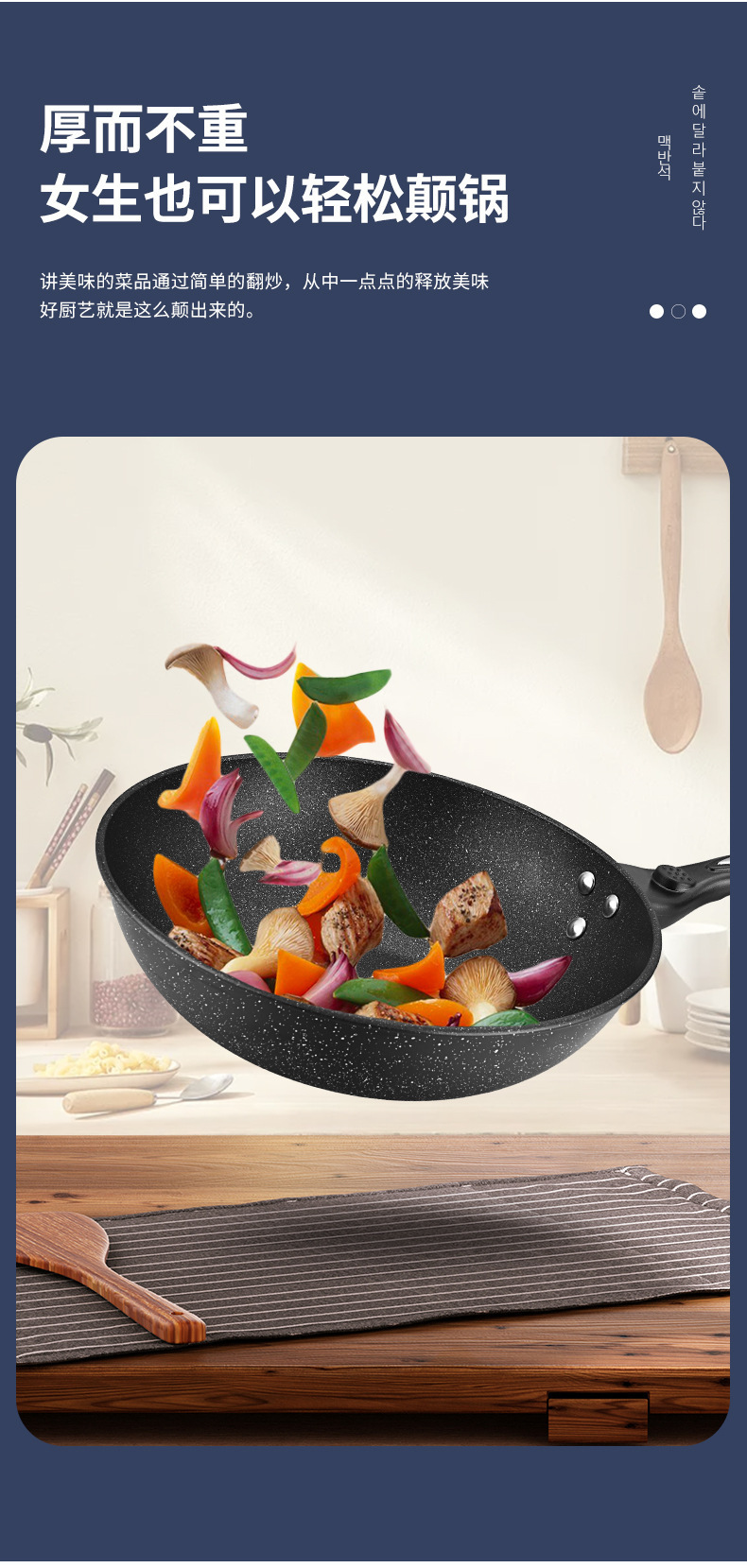 新款韩式平底不粘锅养生锅健康炒锅蒸煮一体锅炒菜锅通用锅具批发