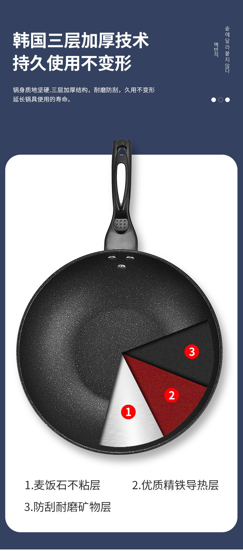 新型の韓国式の平底は鍋の養生鍋の健康な炒め鍋にくっついていません。