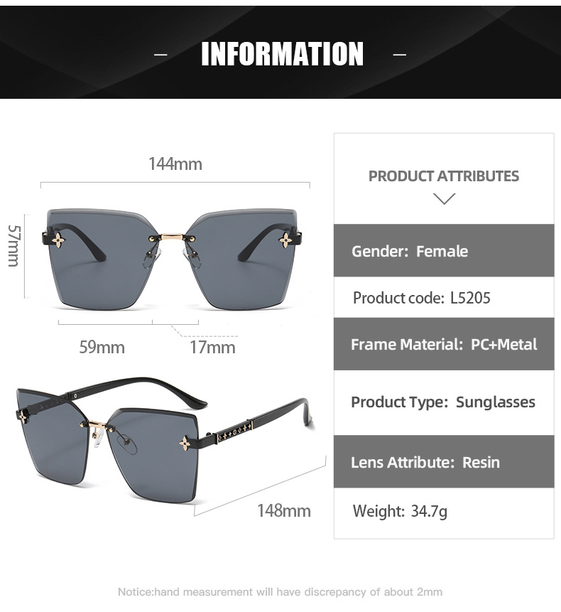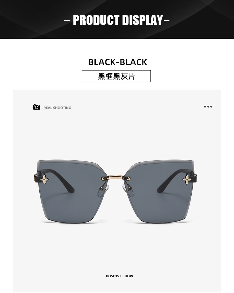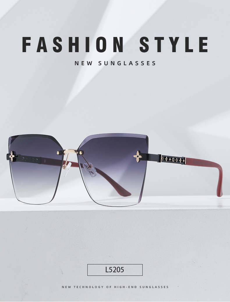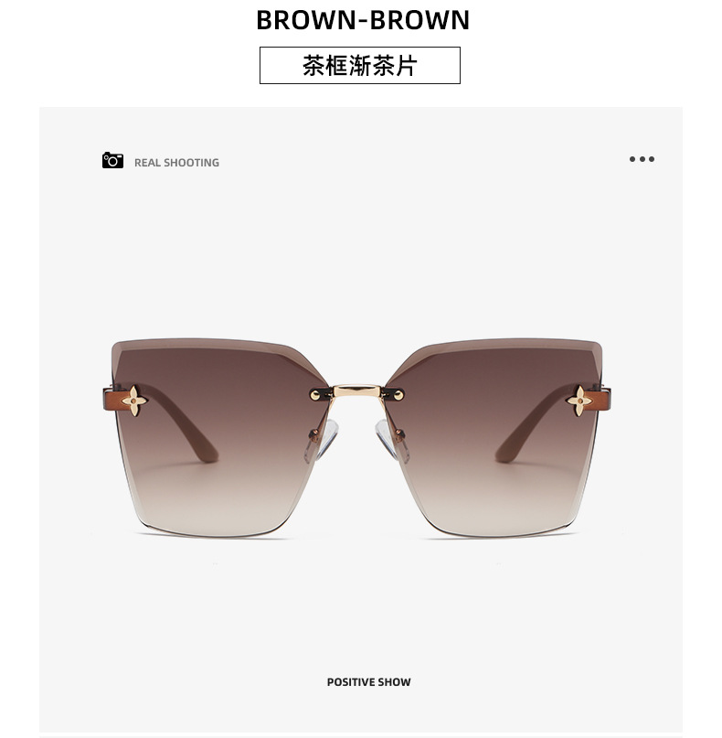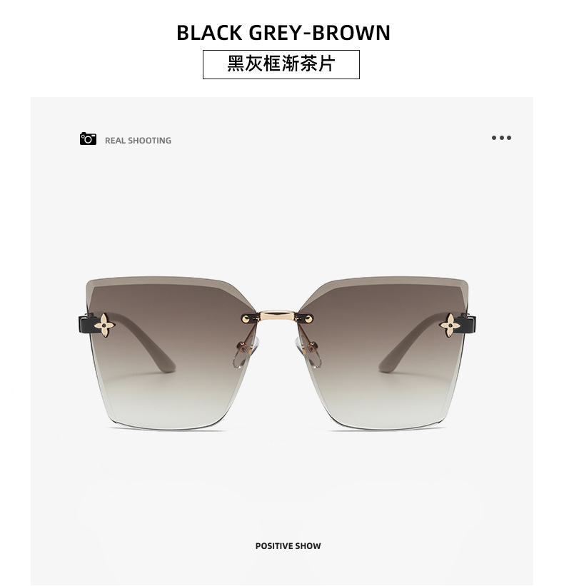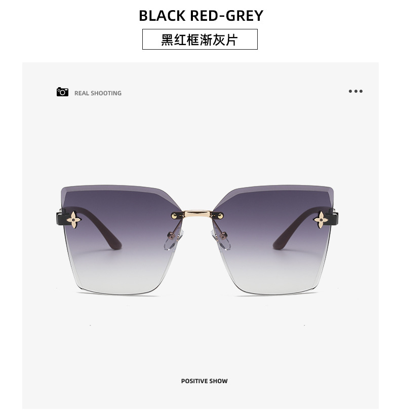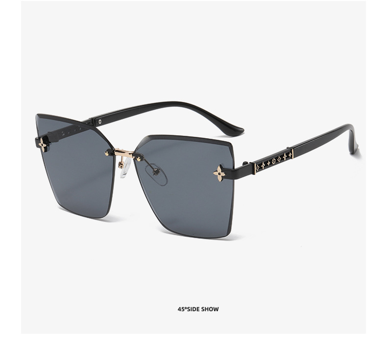 ネット赤直播同金無枠女性サングラス流行個性カットサングラス大枠素顔四葉草眼鏡
