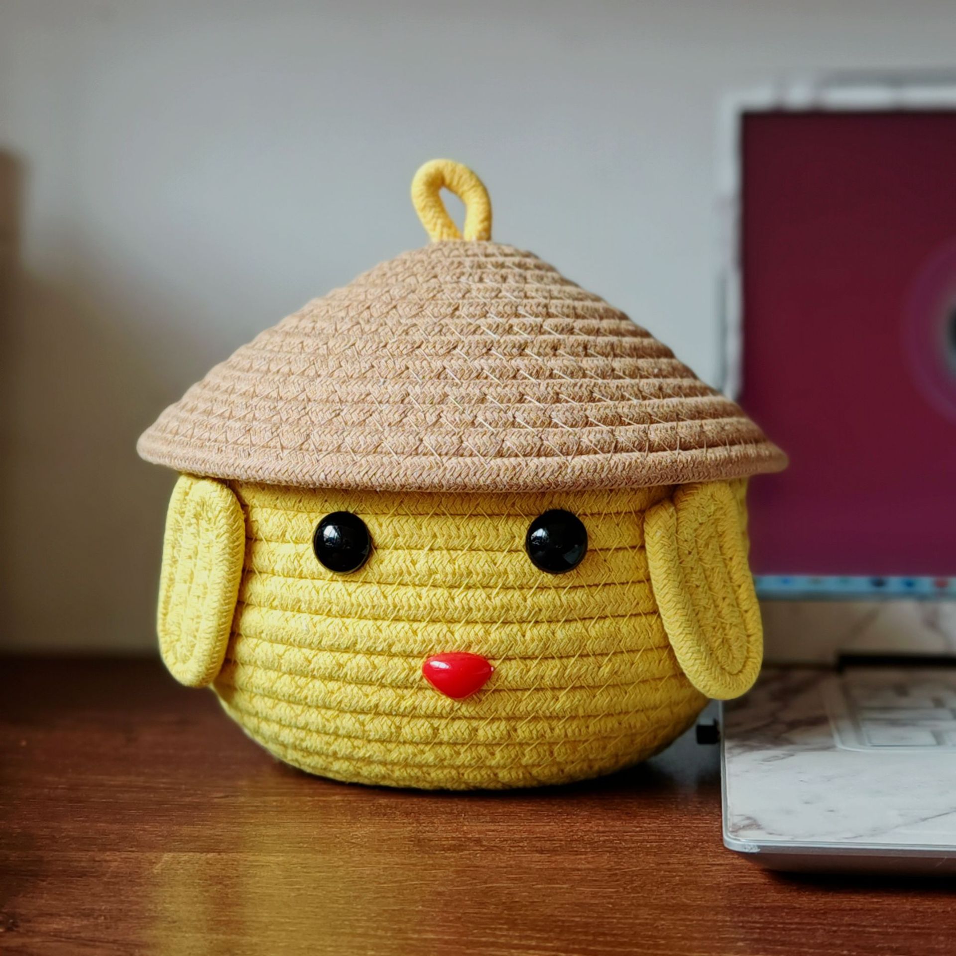 布丁犬の漫画の綿の縄はかごのデスクトップの間食のおもちゃの貯蔵箱の客間のベッドの上の布の工芸品の物かごを編みます。