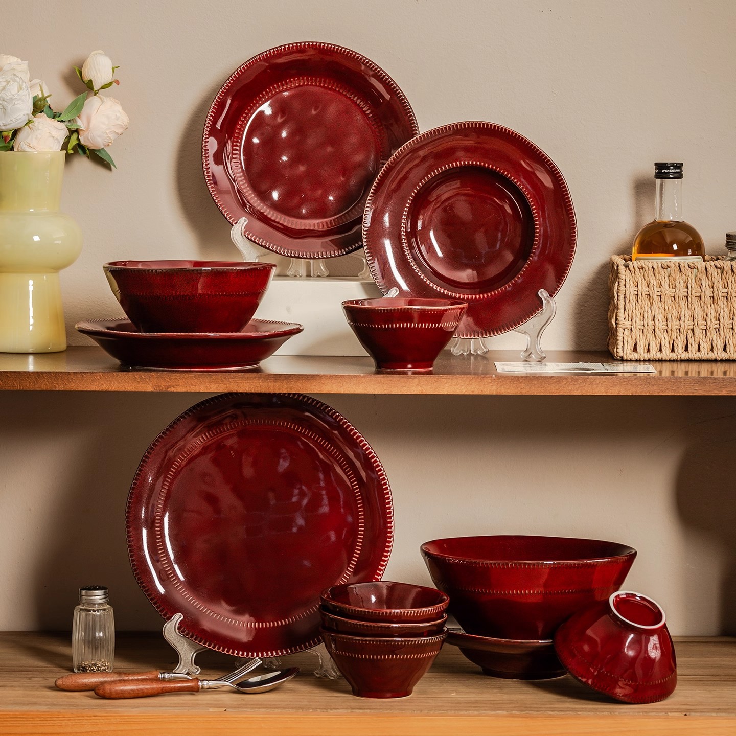 窑变红碗碟盘套装家用高级感釉下彩艺术盘子复古风商用陶瓷餐具