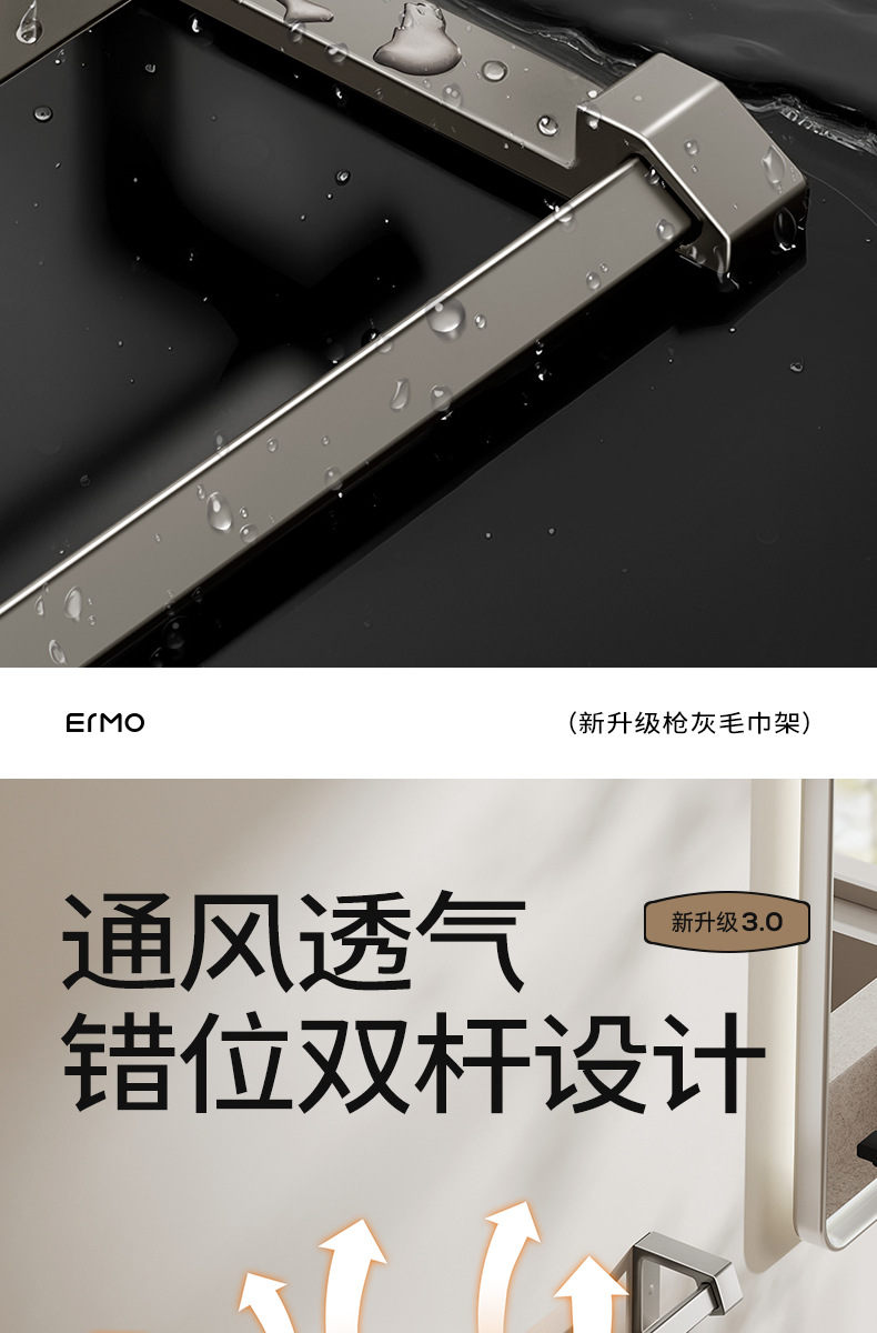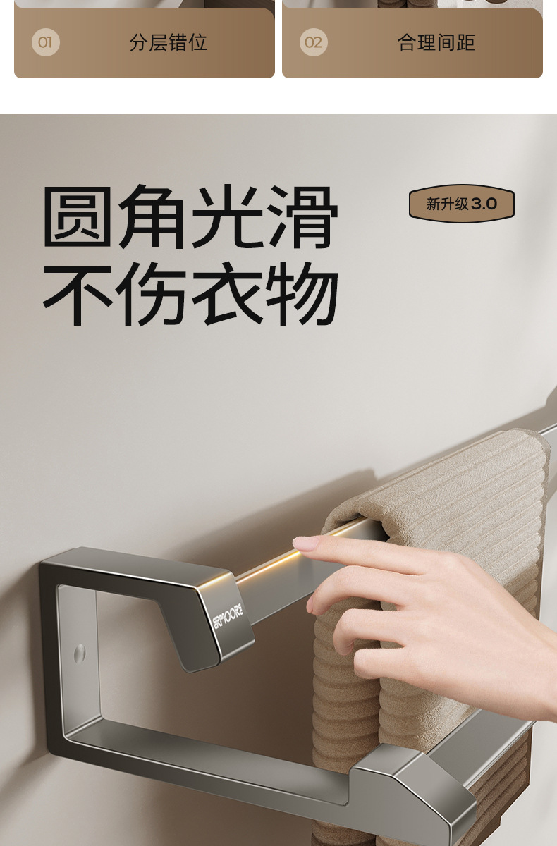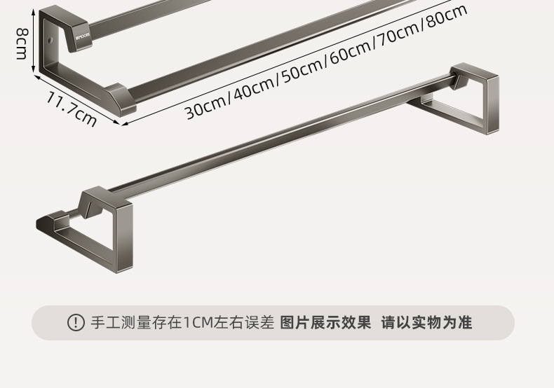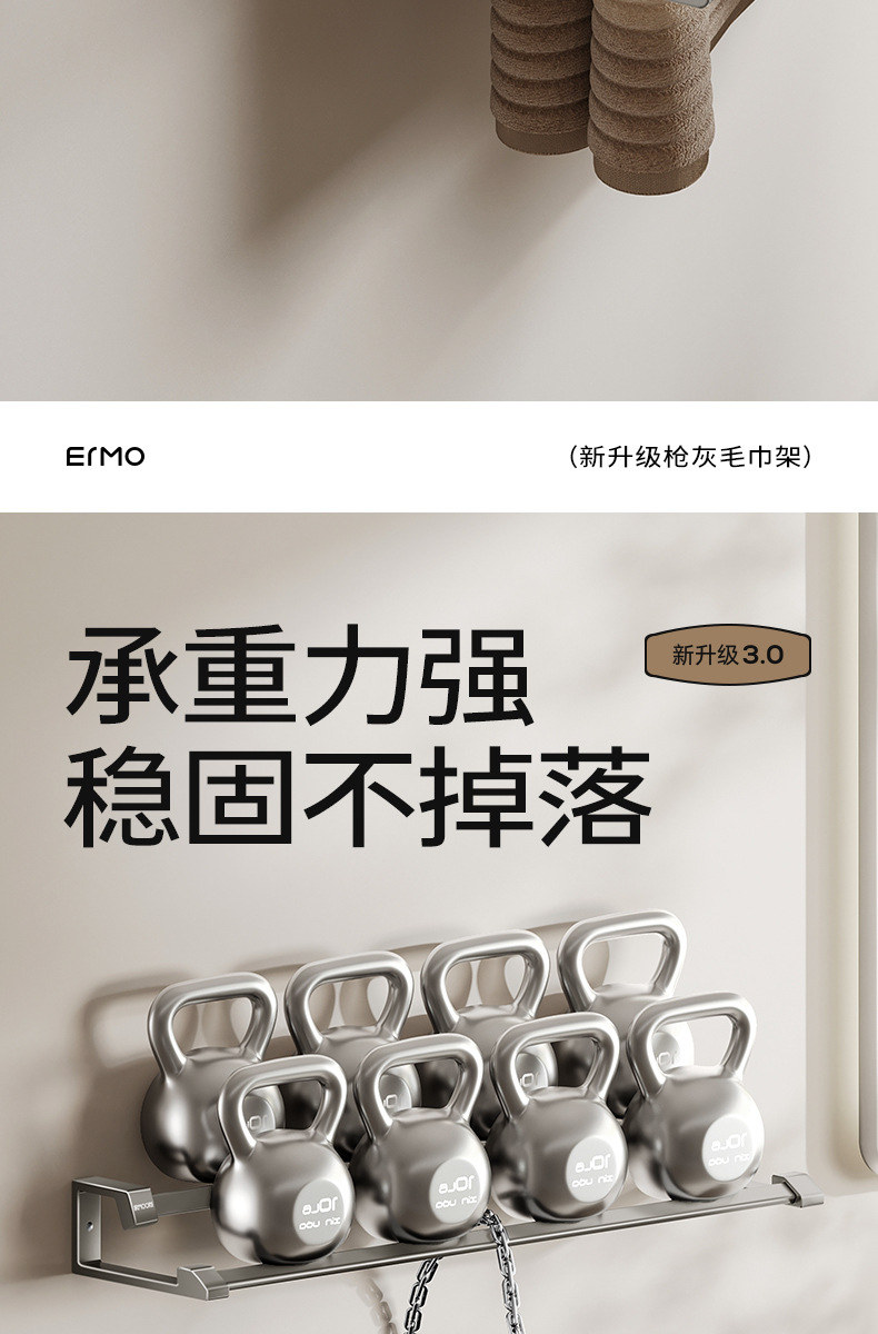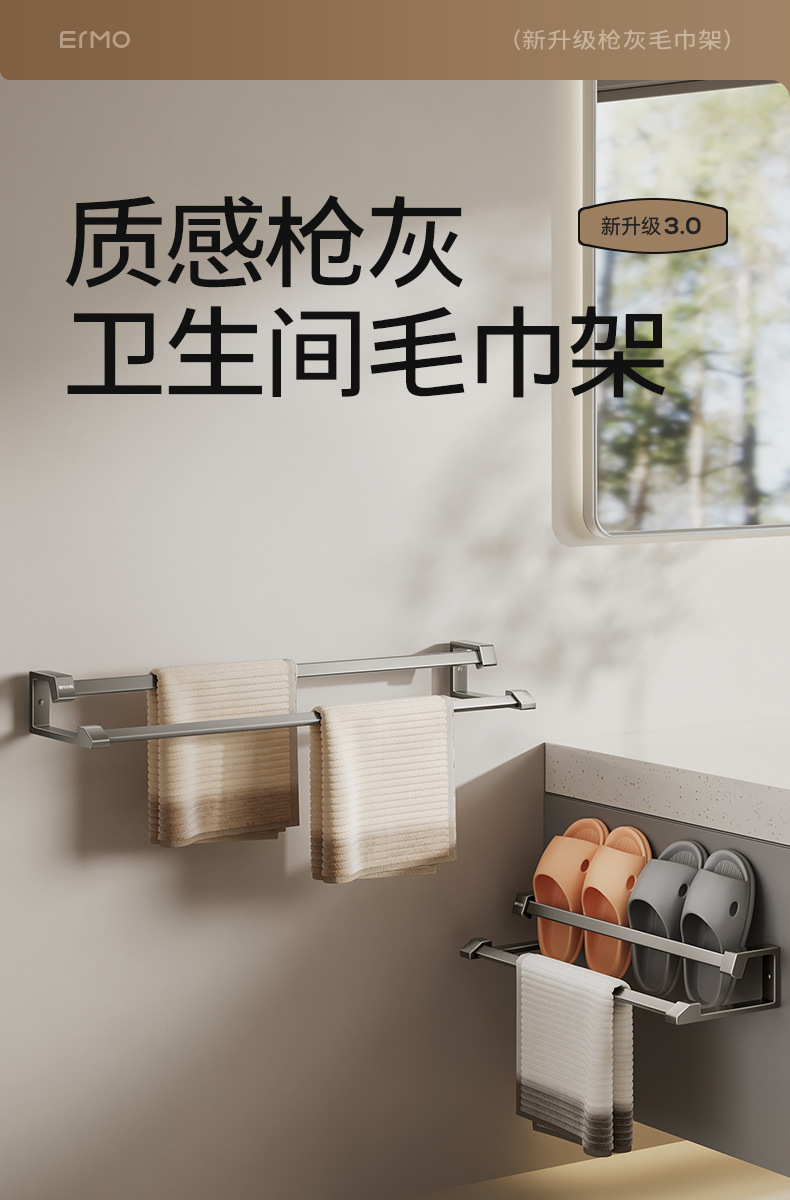 爾泡銃灰トイレステンレスタオル掛け風呂軽豪華タオル棒スタンド穴なし浴室棚