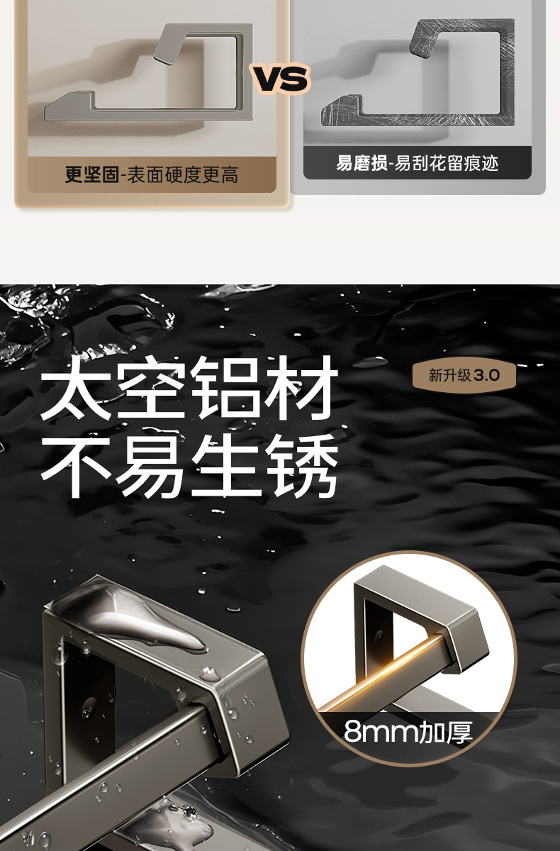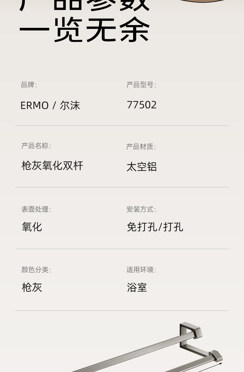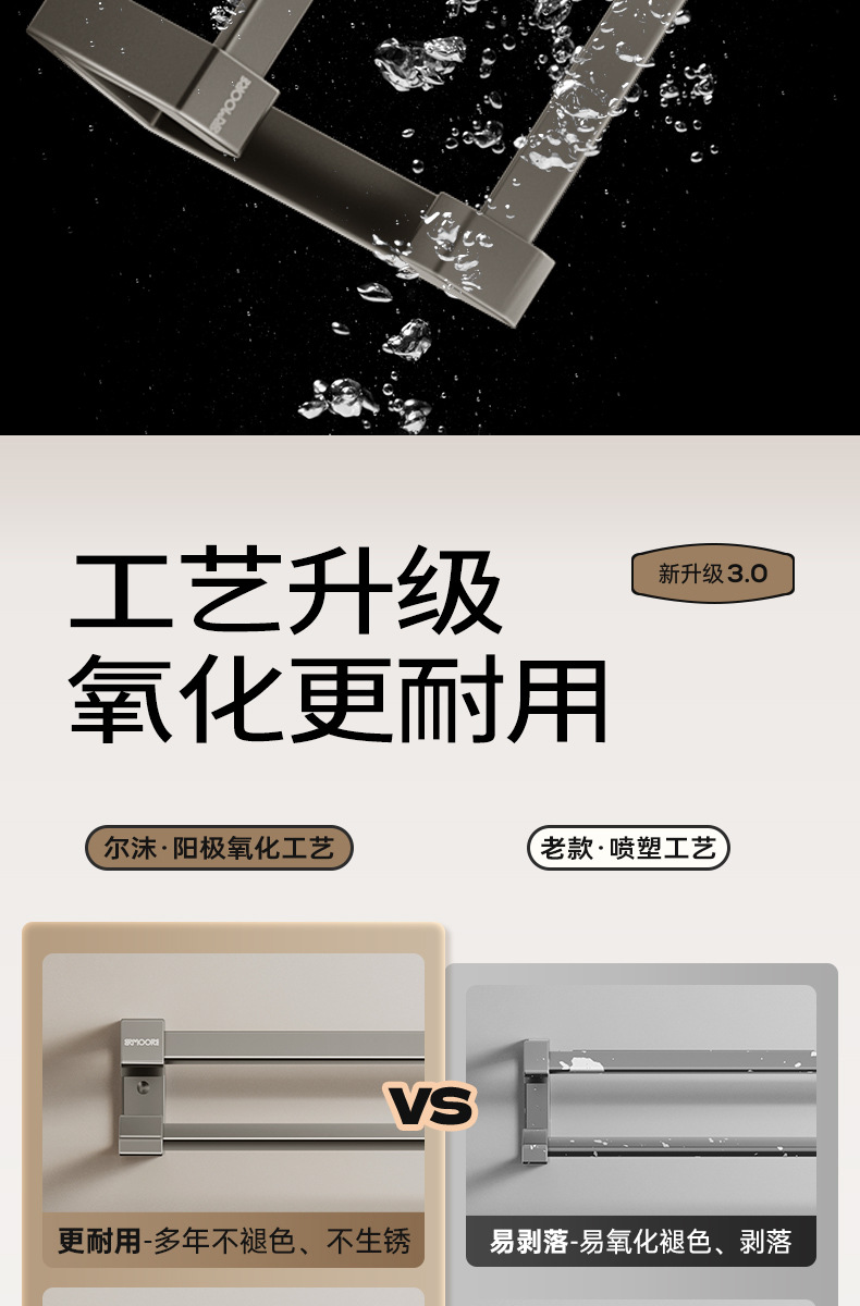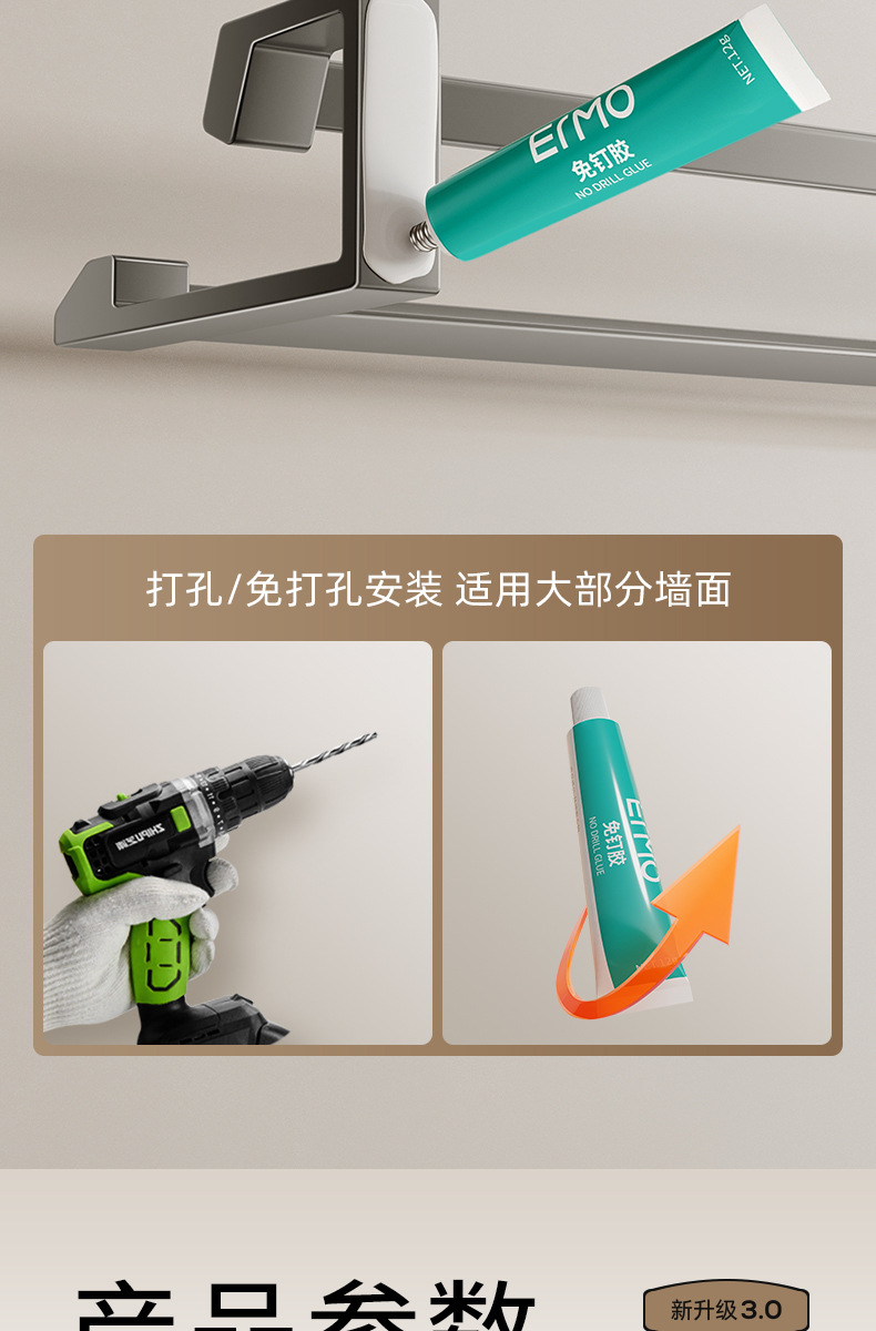 爾泡銃灰トイレステンレスタオル掛け風呂軽豪華タオル棒スタンド穴なし浴室棚