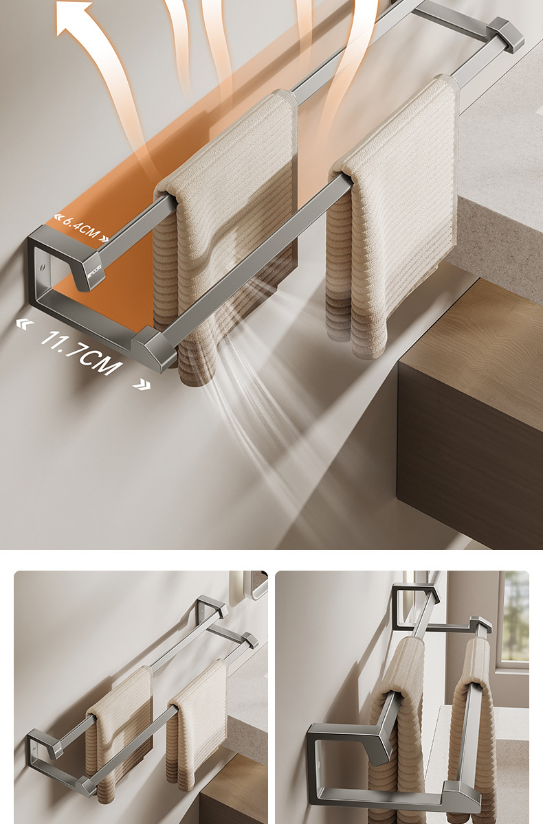 浴室のタオル掛けの銃の灰色の双棒は穴を開けないでトイレにタオルを掛けます。