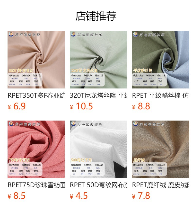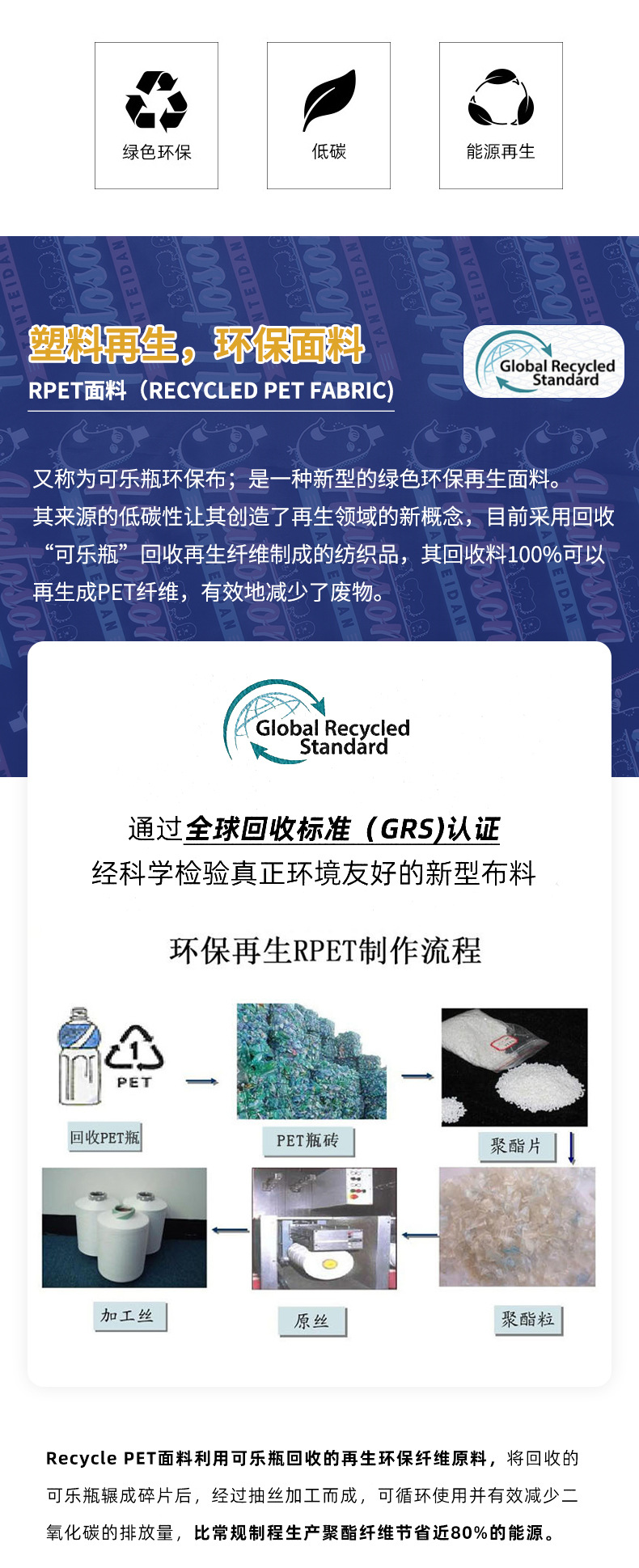 RPETシュームシルツイル生地、ワークウェア、ウインドブレーカー、スーツジャケット、バッグの裏地、再生生地、再生・環境保護。