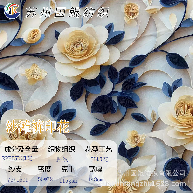 Rpet 5dプリントビーチパンツ服装家庭服家庭用紡績ベッド4点セットのカーテン車飾りが柔らかくて快適で通気性がある