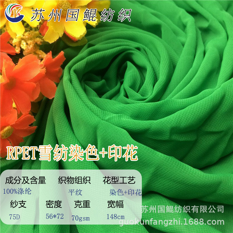 50Dサテン微透シフォン生地純色ポリエステルサテンシフォンワンピースカジュアル服再生生地