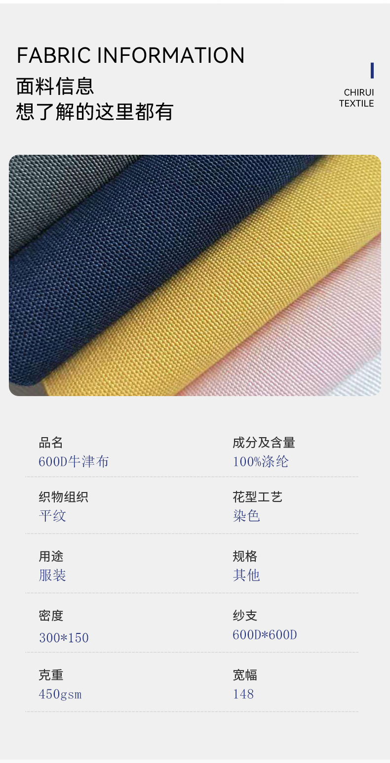 600Dオックスフォード布PEラミネートホーム布団衣類収納ボックス生地屋外折りたたみ椅子防水耐摩耗生地