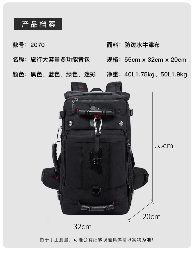 Kkaランドセル男性旅行リュックサックアウトドアスポーツバッグ大容量三用防水実用超大型登山バッグ