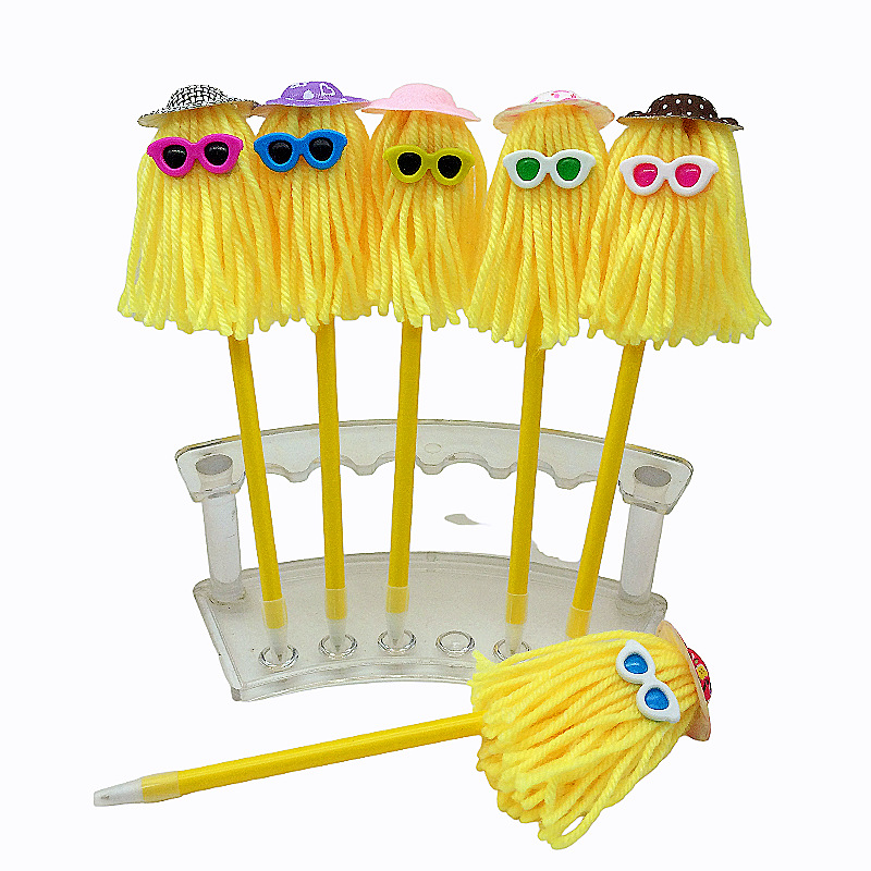 源头货新款毛线眼镜玩具笔毛线玩具可爱的笔创意眼镜卡通笔