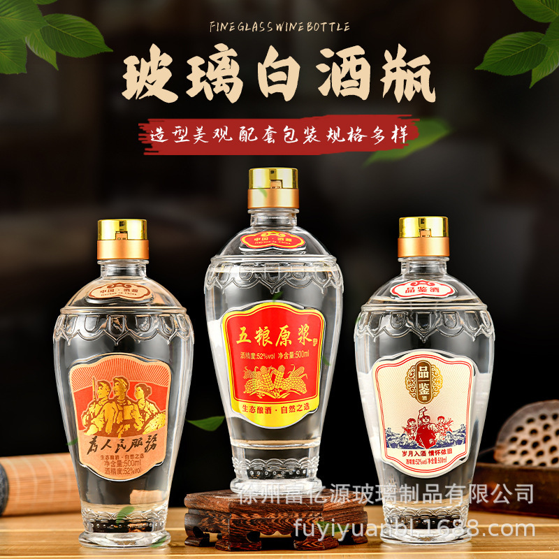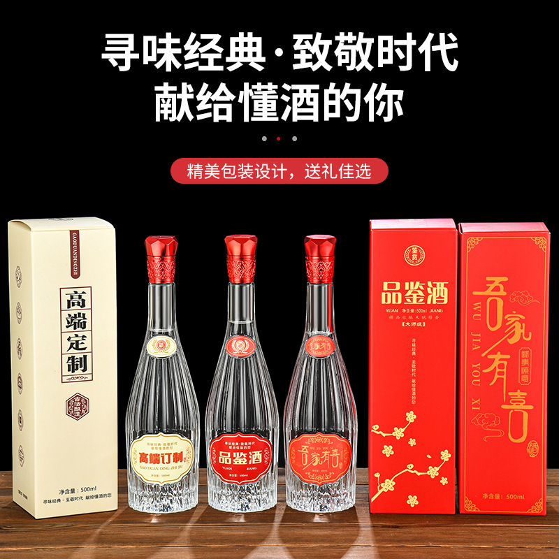 卸売り白瓶500ml晶白料開山酒瓶セット祝宴透明酒瓶自醸造密封空酒瓶
