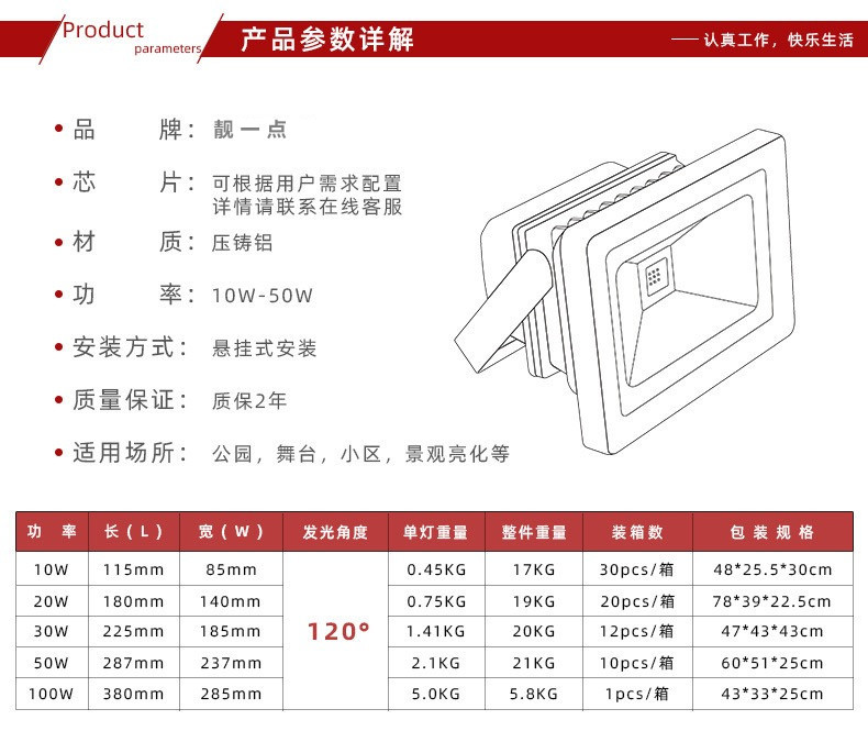 100wledフラッドライト屋外ハイライト照明庭園園林公園運動場ハイパワー防水rgb投光器
