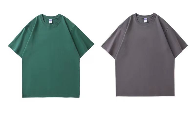 重ポンド200グラム精櫛純綿正肩純色丸首半袖文化シャツtシャツ男女同項印刷図