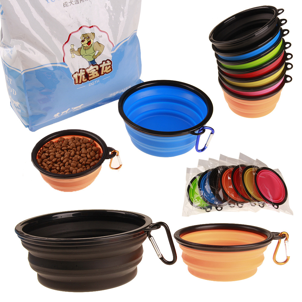 犬の碗のペットの便利な折り畳み式の碗の犬の外で碗の猫の折り畳みの碗のテディの金の毛のたらいの現物の卸売り