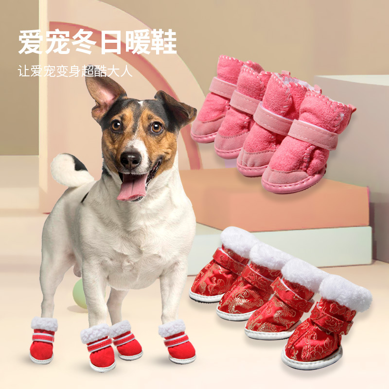 ペット用スノーブーツ、犬用シューズ、ベルベットの暖かいソフトソールシューズ、ペットシューズ卸売、工場直送ペット用品