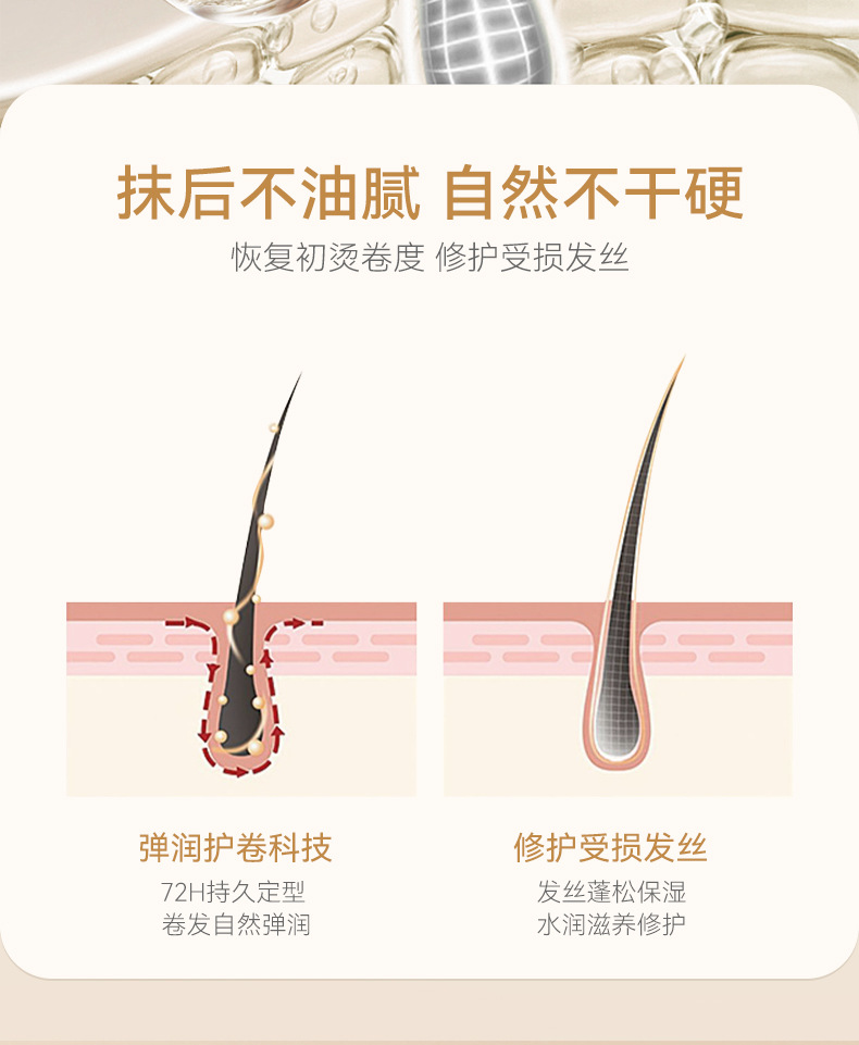 クロスボーダーのカールクリームは潤いがあります。巻き髪を保護します。