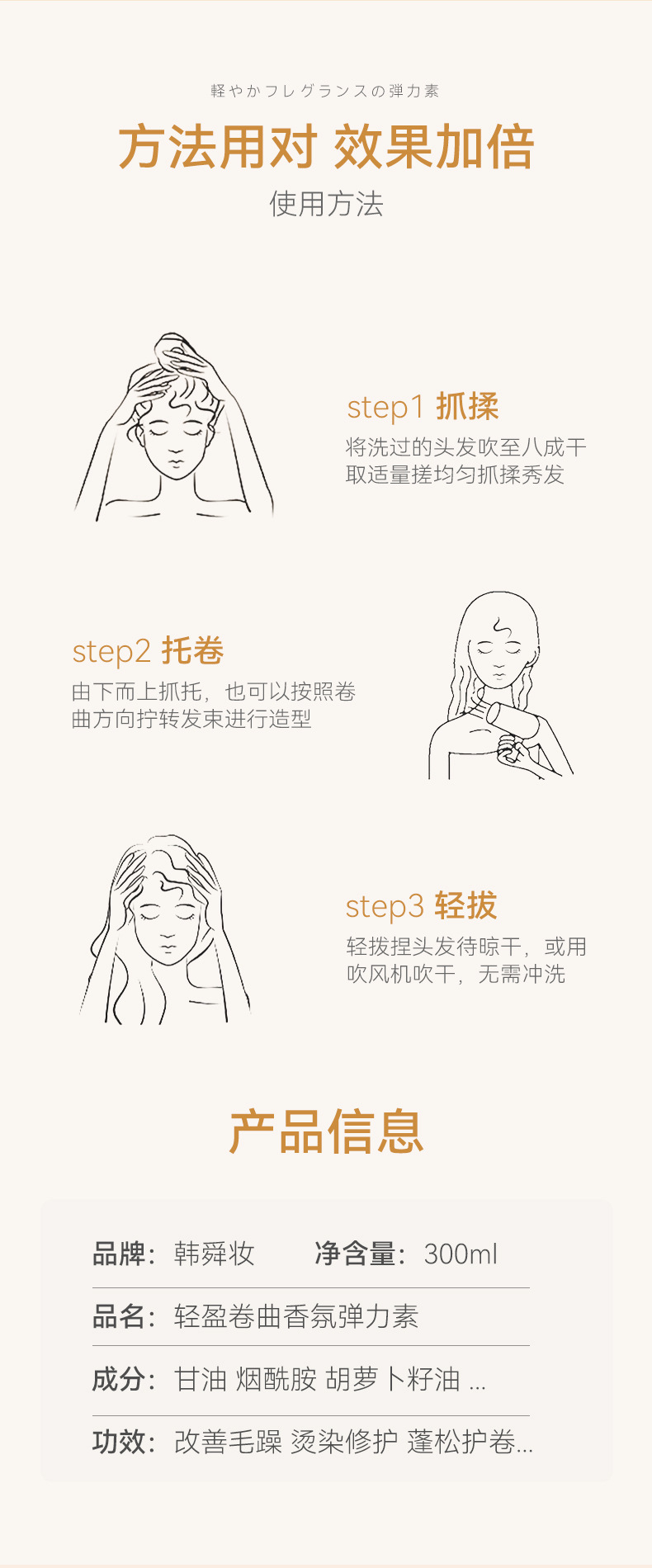 韓舜化粧カール雰囲気弾力素さんは、カールセットのふわふわしたヘアケアをしています。