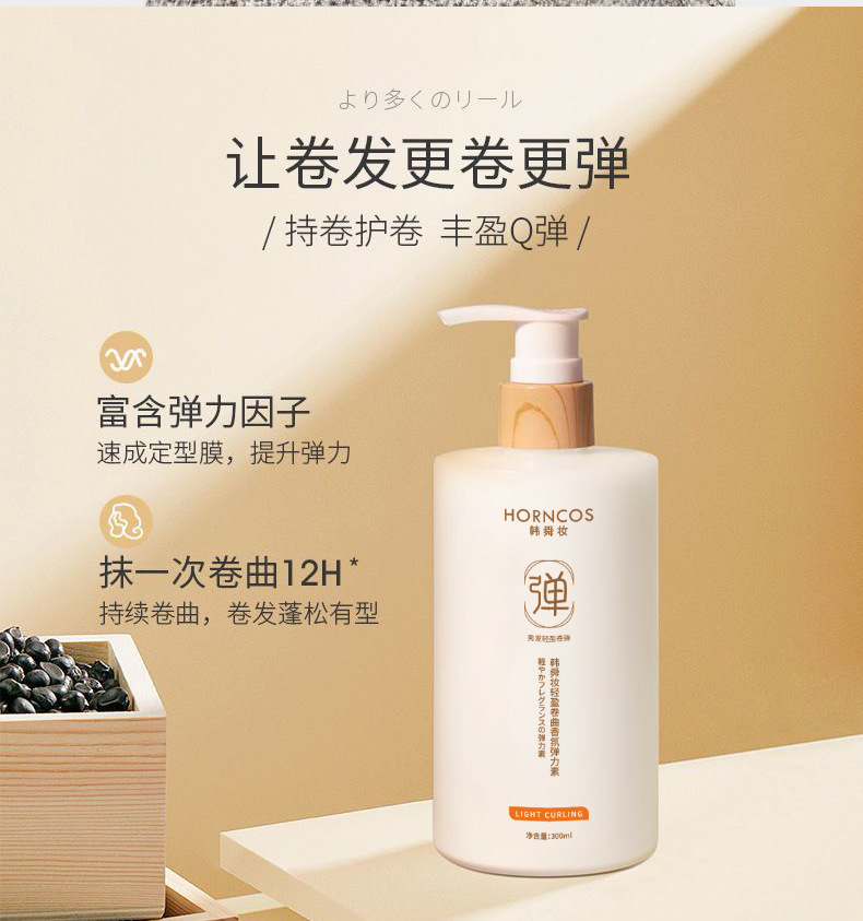 越境で人気のHORNCOS韓順製造のストレッチエラスチン、パーマ後のスタイリング、ボリュームアップ、ヘアケア製品