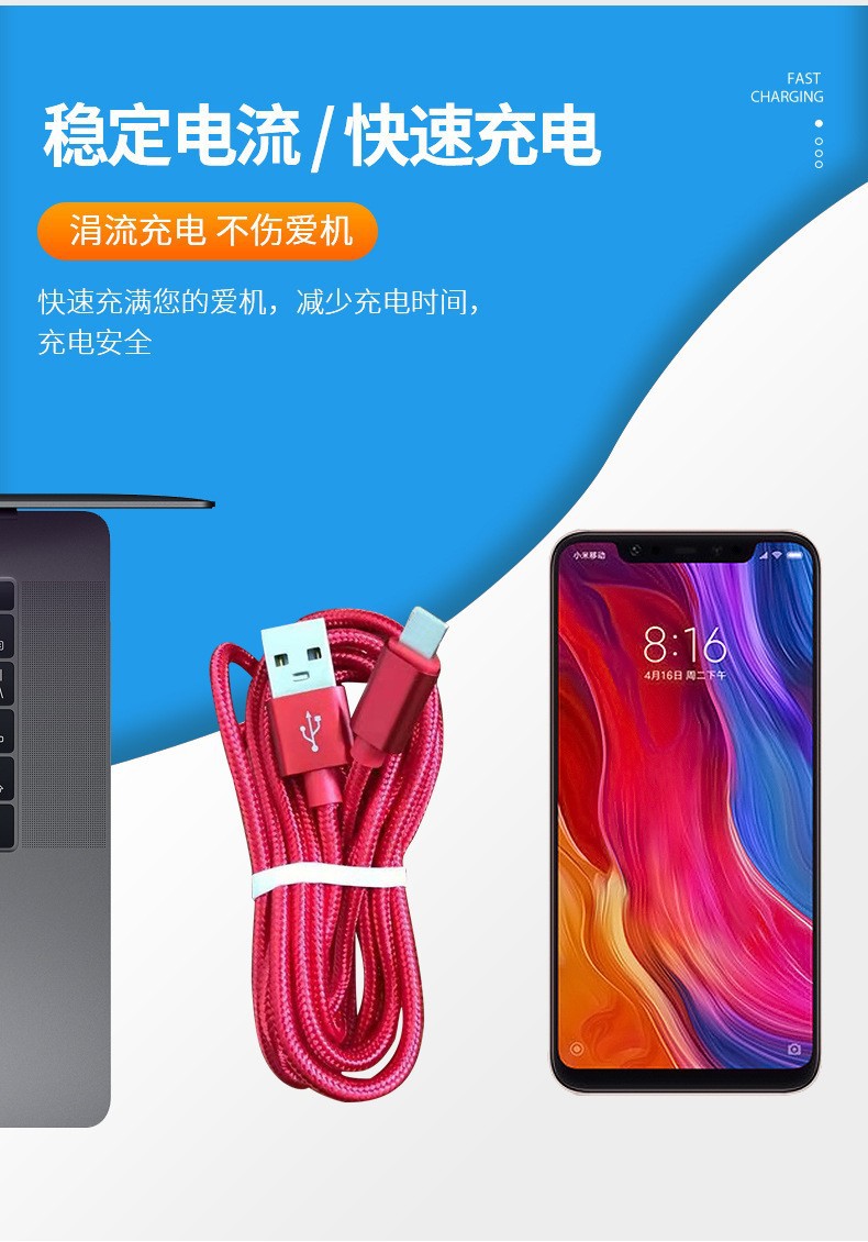 ナイロン编み2a単线ライティングアンドロイドtypec充电ケーブル1メートル编みデータワイヤーイベントギフト