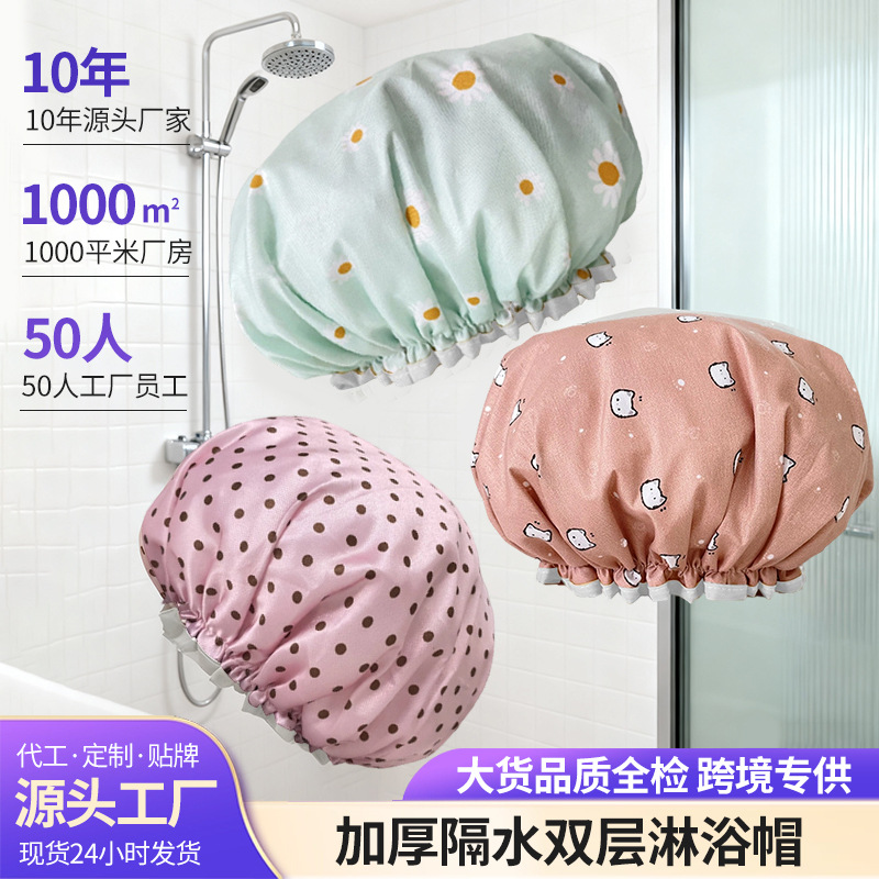 二重シャワーキャップ箔押しプリントシャワーキャップ女性防水入浴家庭用防油煙防汚ポリエステル綿peva代発可