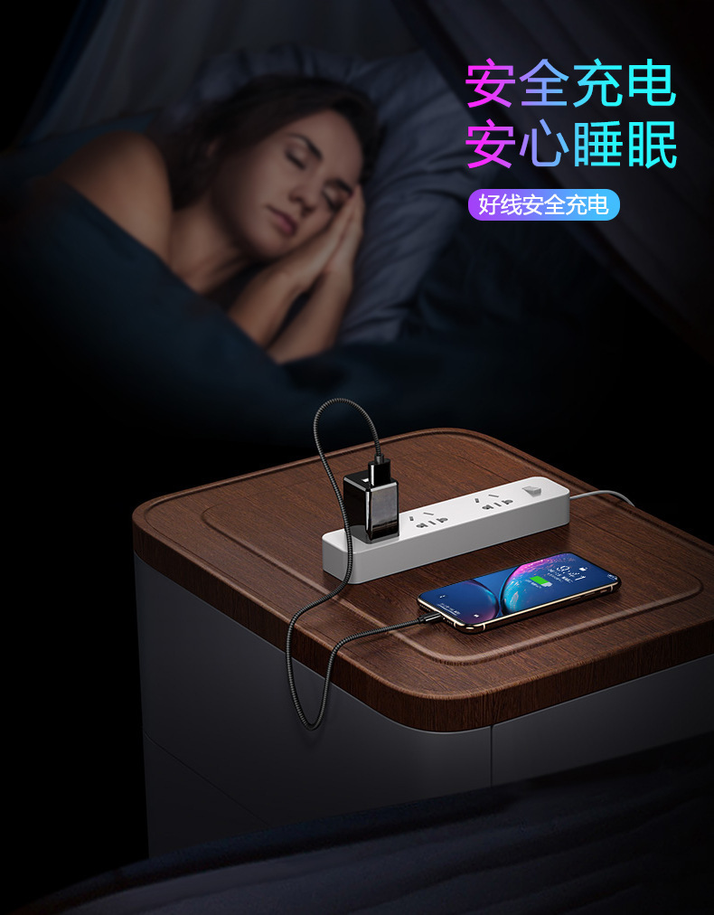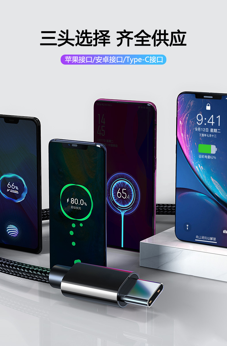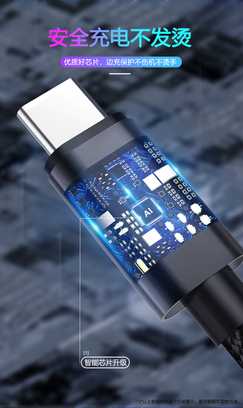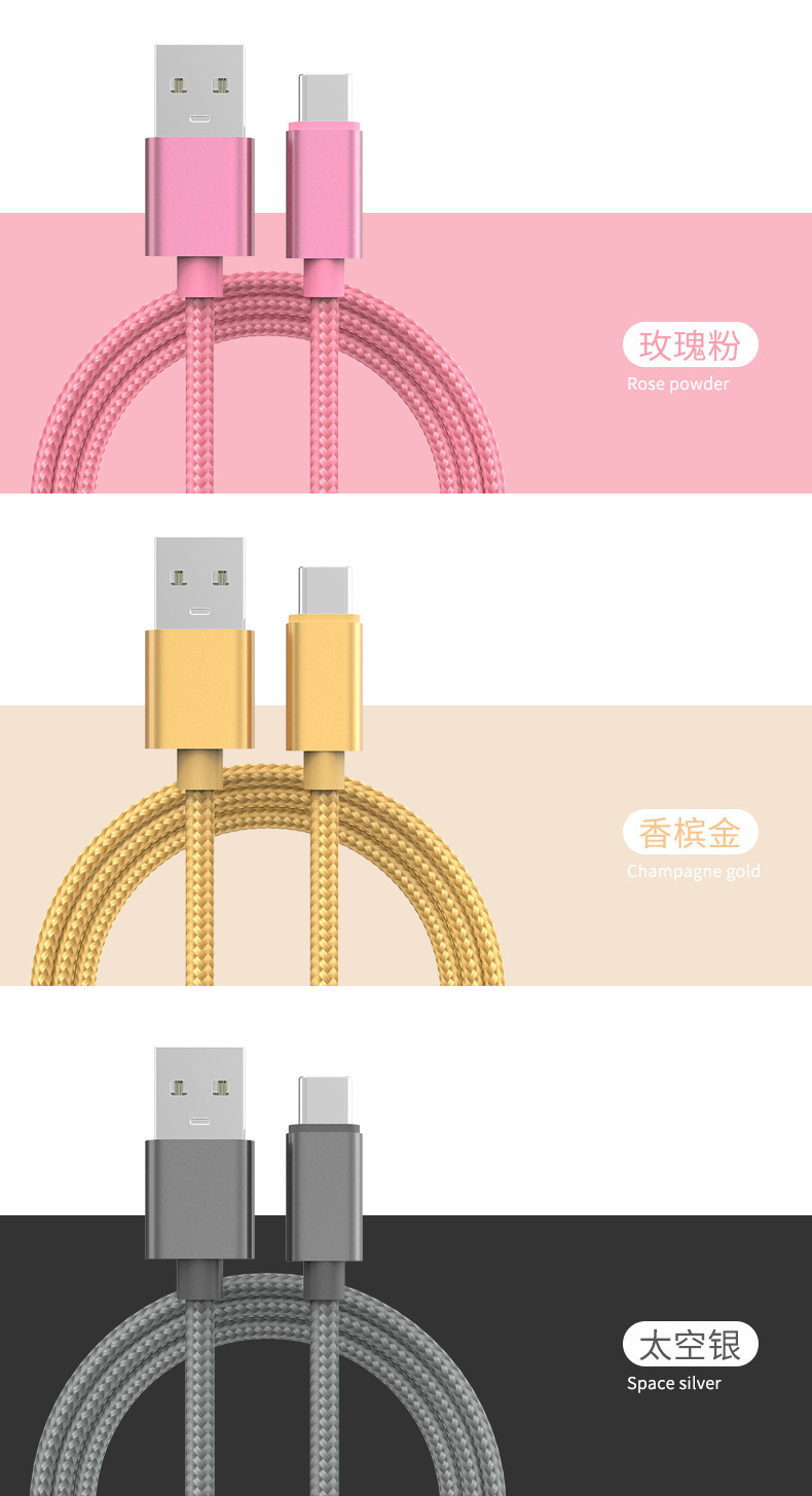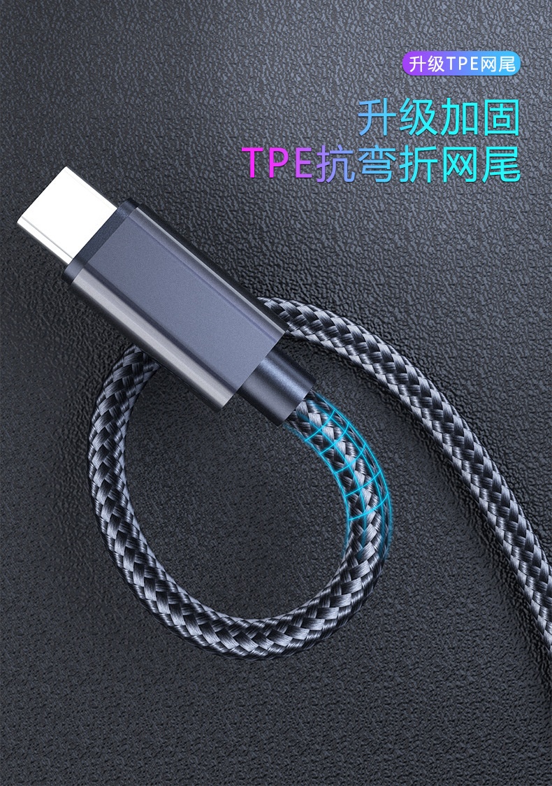 シングルヘッド1m3a充電ケーブル急速充電ナイロン編組データケーブル単線良質銅芯安卓type-cインターフェイス