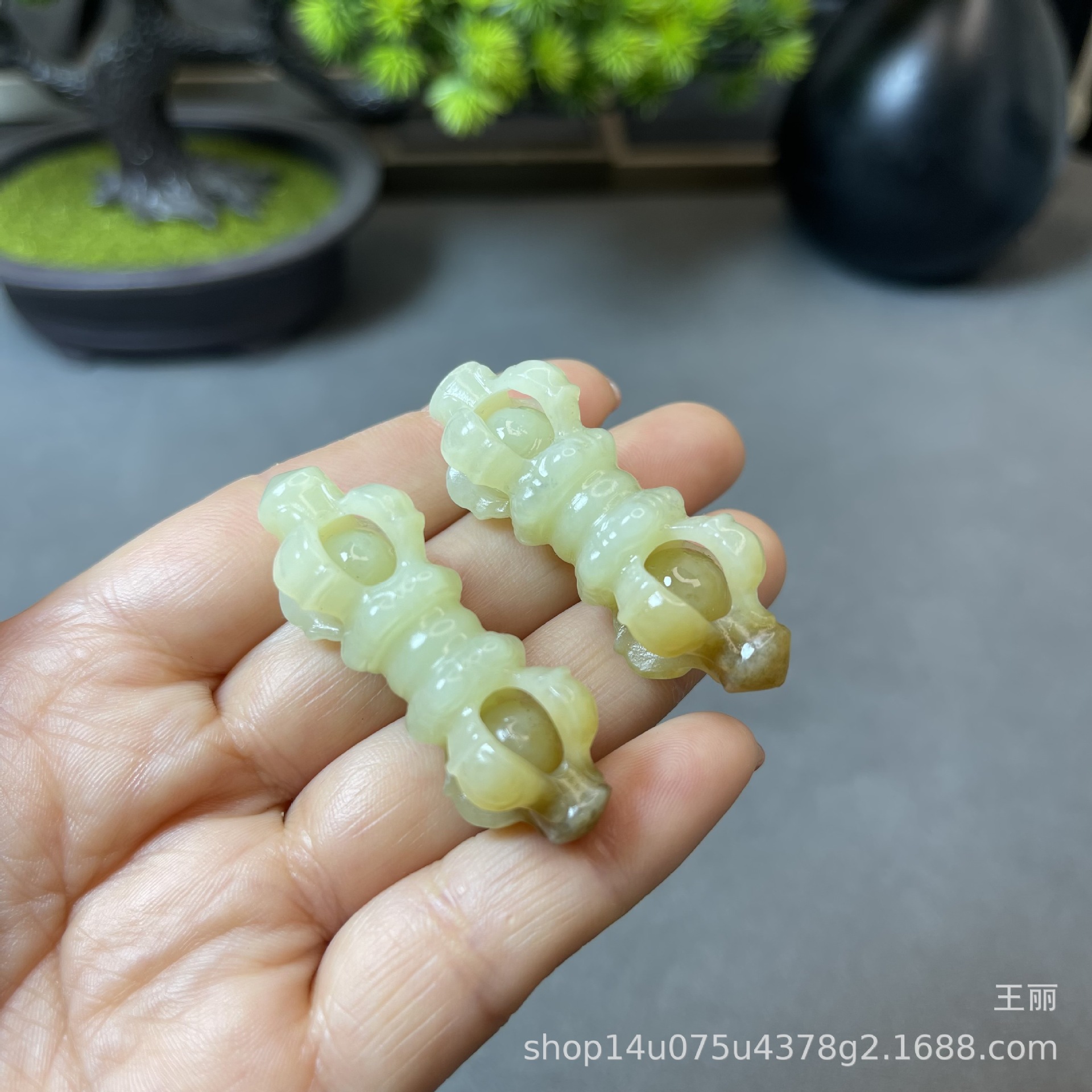 和田玉碧玉長条珠満緑長桶珠随形珠原石散珠路通編み珠チェーン部品
