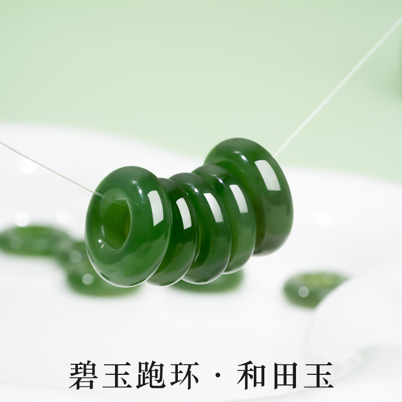 天然和田玉碧玉跑环圈 手工DIY配饰手捻跑圈文玩珠串手饰挂坠批发